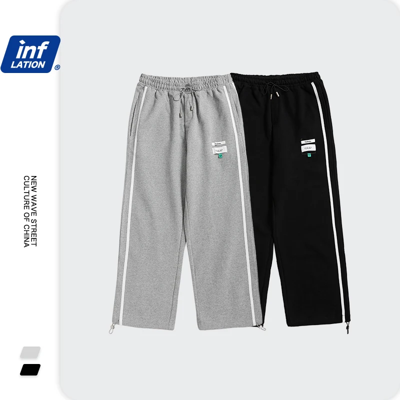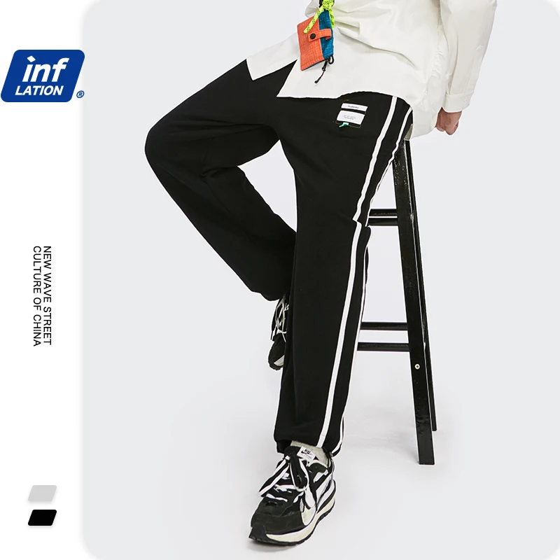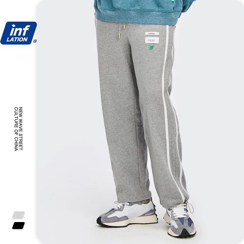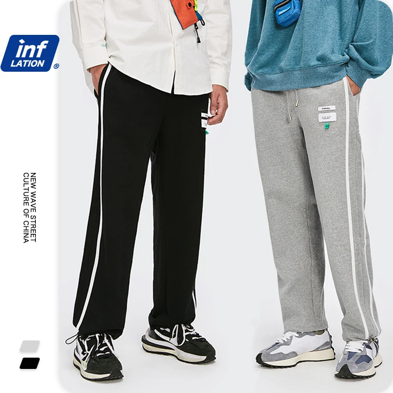 Мужские спортивные штаны с эластичным поясом, модные джоггеры с боковыми полосками, Свободные флисовые вязаные спортивные штаны для пар, 3325 Вт