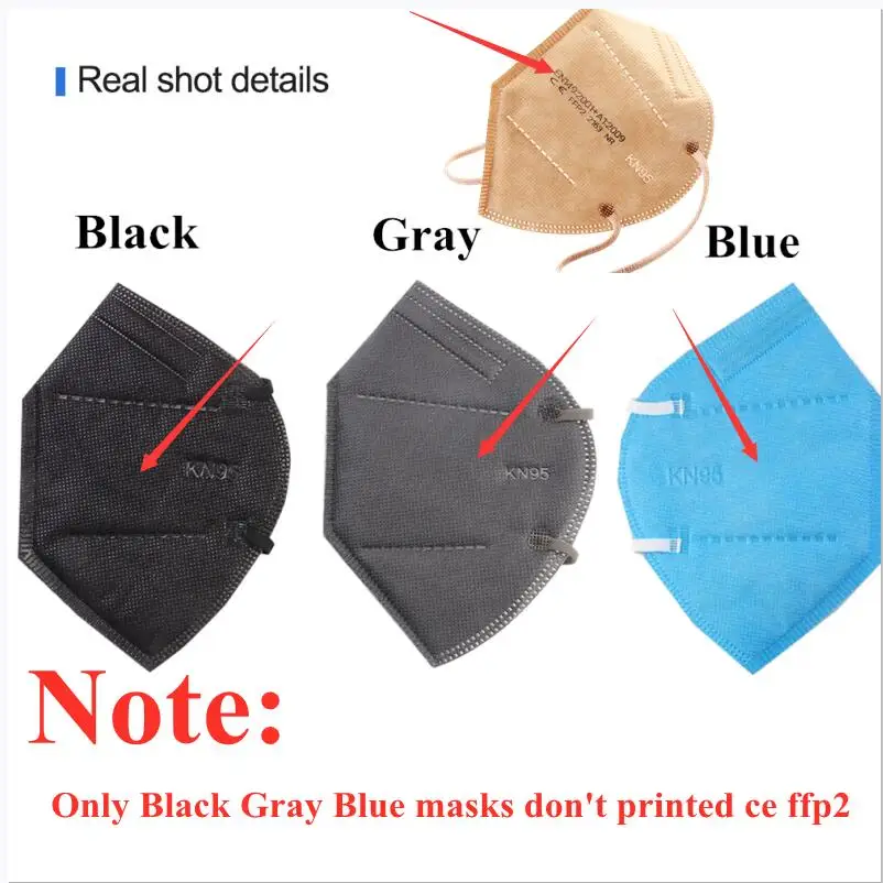 500 шт. FFP2 Маска Защитная KN95 Цвет противопылевая лицевая маска ...