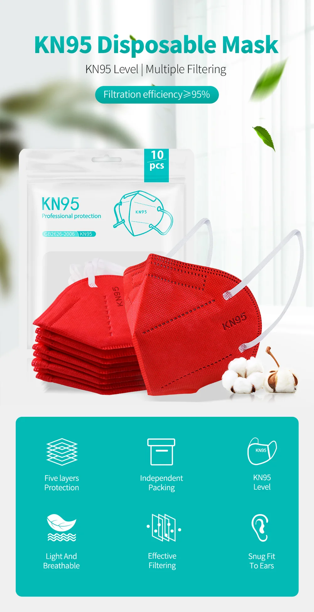 Название: KN95Материал: Нетканая ткань, растворимый спрей KN95, Теплоизоляционный хлопокВес: 6 г/МаскаЦвет: белыйРазмеры: 10,5 × 14,5 смДополнительные особенности маски:* Сохраняет тепло и водонепроницаемость* Мягкая текстура и удобная одежда* Фильтрация PM 2,5 с коэффициентом эффективности до 95%Маска не является одноразовой. Этот специальный чехол (недостаток ресурсов) можно использовать повторно. Но есть условия:1. При получении загрязнений, таких как слюна, кровь, слезы и другие жидкости в организме, их необходимо заменить.2. Пользователь, очевидно, чувствует, что сопротивление дыханию больше, чем раньше и должно быть заменено.3. Маски повреждены и должны быть заменены.Пожалуйста, обратите внимание, что указанный Товар производится и распространен за рубежом и в соответствии с законодательством страны его происхождения.