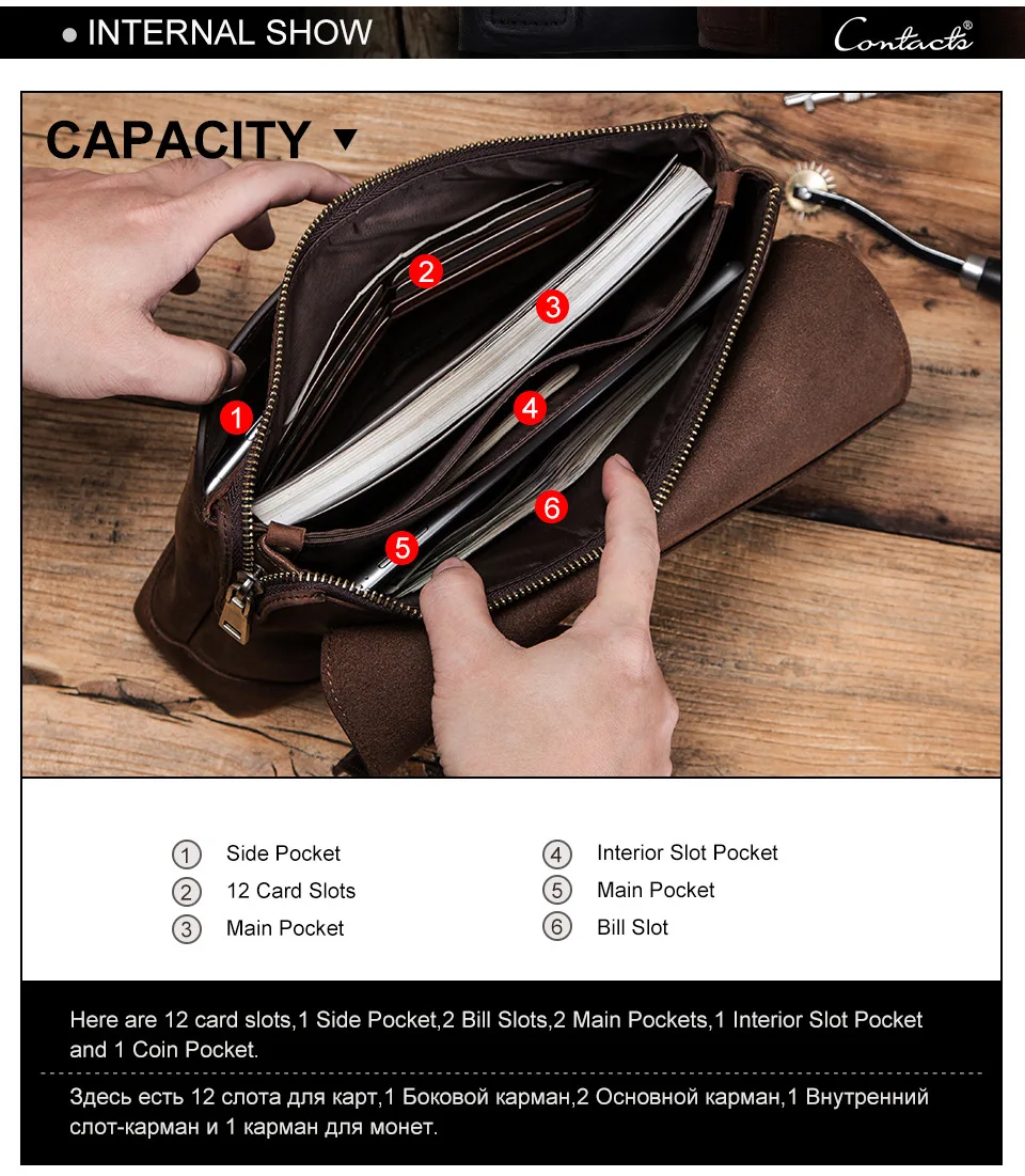 Мужской клатч большой вместимости, мужские кошельки из натуральной кожи Crazy Horse, кожаная сумка для денег, Мужской многофункциональный кошелек, Passport Cov
