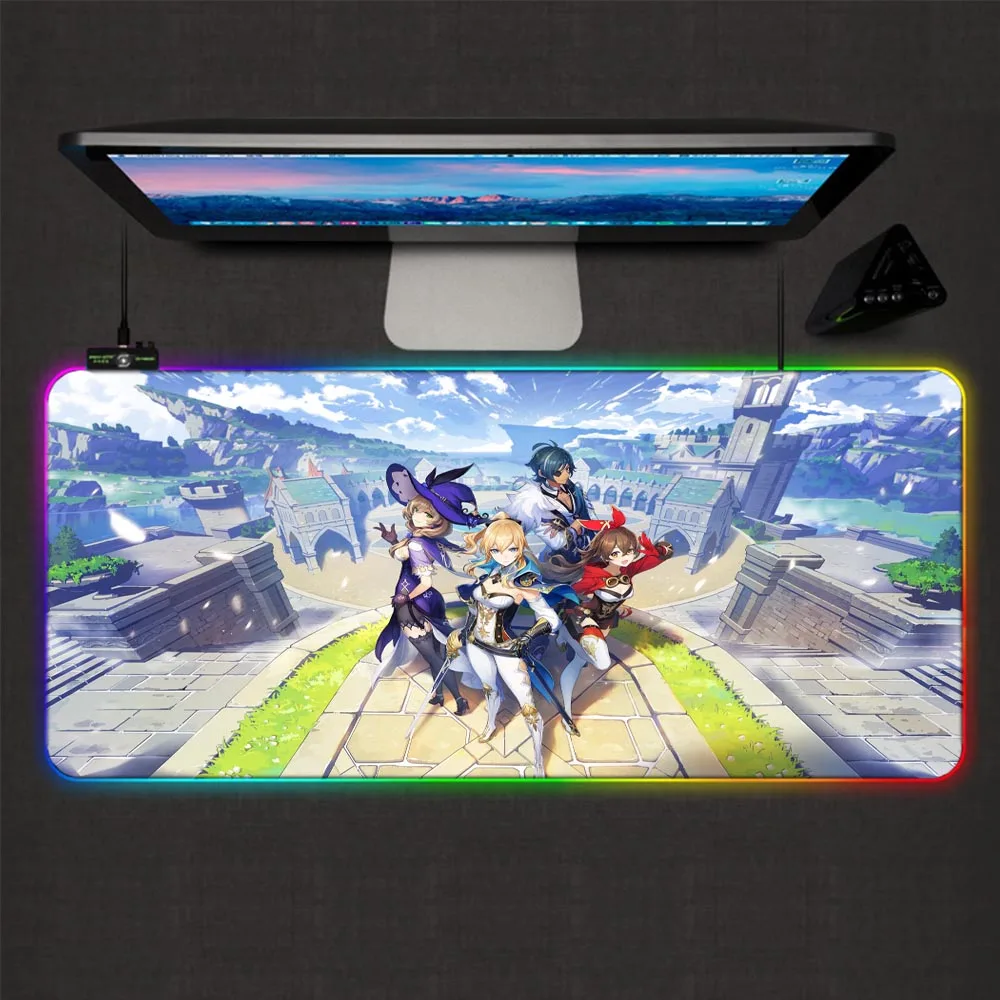 Большой коврик для мыши Genshin ударопрочный компьютерный ноутбук клавиатура RGB с подсветкой USB игровые аксессуары Аниме настольный игровой коврик для мыши