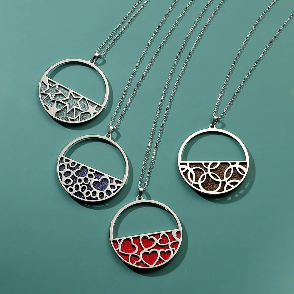 Информация: Тип: ожерелье с подвеской из нержавеющей стали. Материал: нержавеющая сталь + кожа. Пол: все женщины. Размер: 70 + 5 см длина цепочки Вес: около 10 г дизайн: сменный кожаный кулон Повод: Свадьба, помолвка, годовщина, вечерние, подарок на день Святого Валентина.