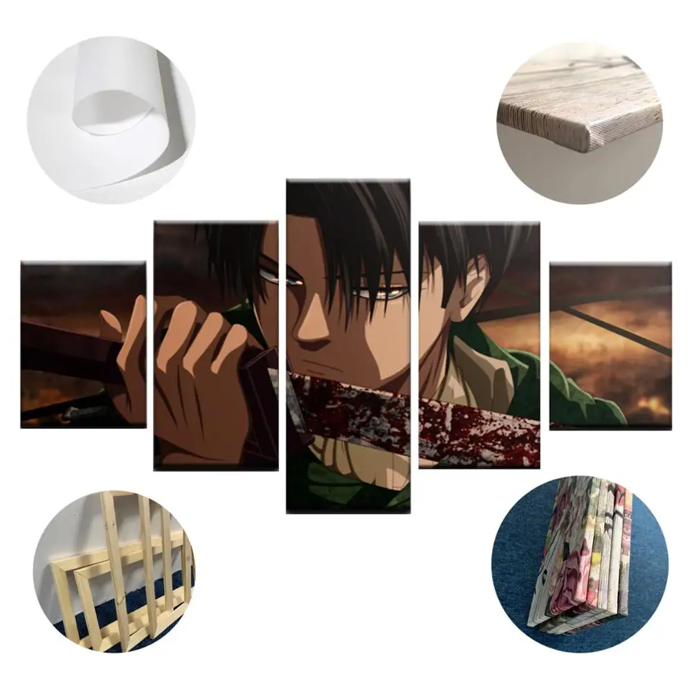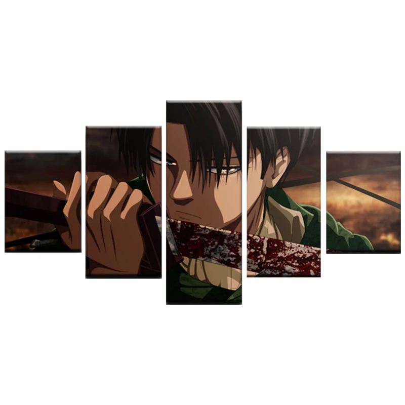 Модульные картины для домашнего декора, Картина на холсте, 5 панелей, атака на титанов, кровь, Леви Акерман, меч, плакаты, настенное искусство для мальчиков