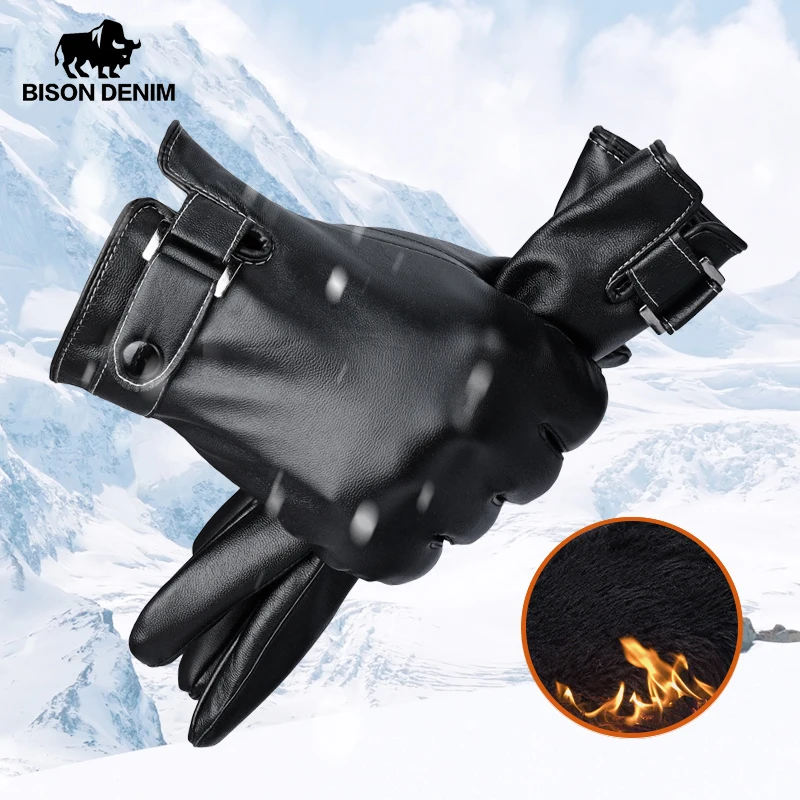 BISON DENIMтеплые зимние перчатки для мужчин с сенсорным экраном, ветрозащитные водонепроницаемые мужские перчатки из искусственной кожи, перчатки для езды на велосипеде S069