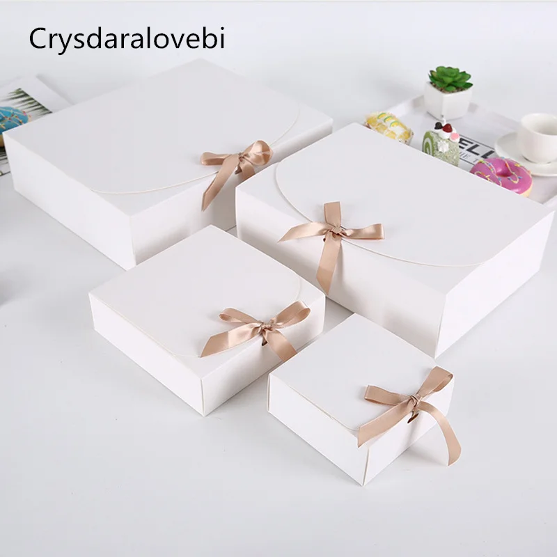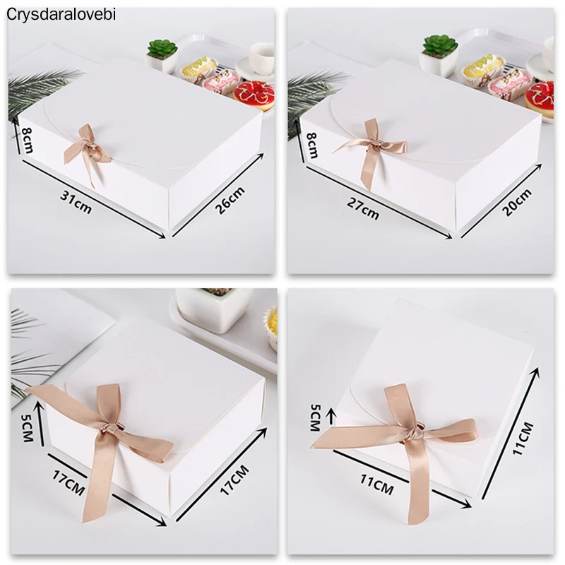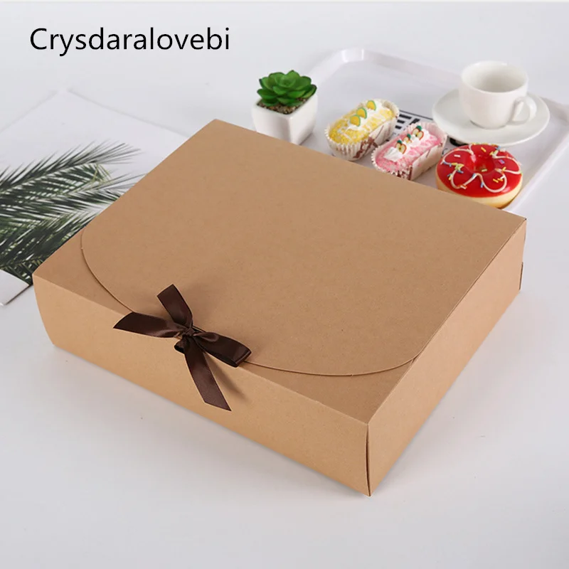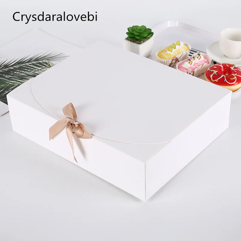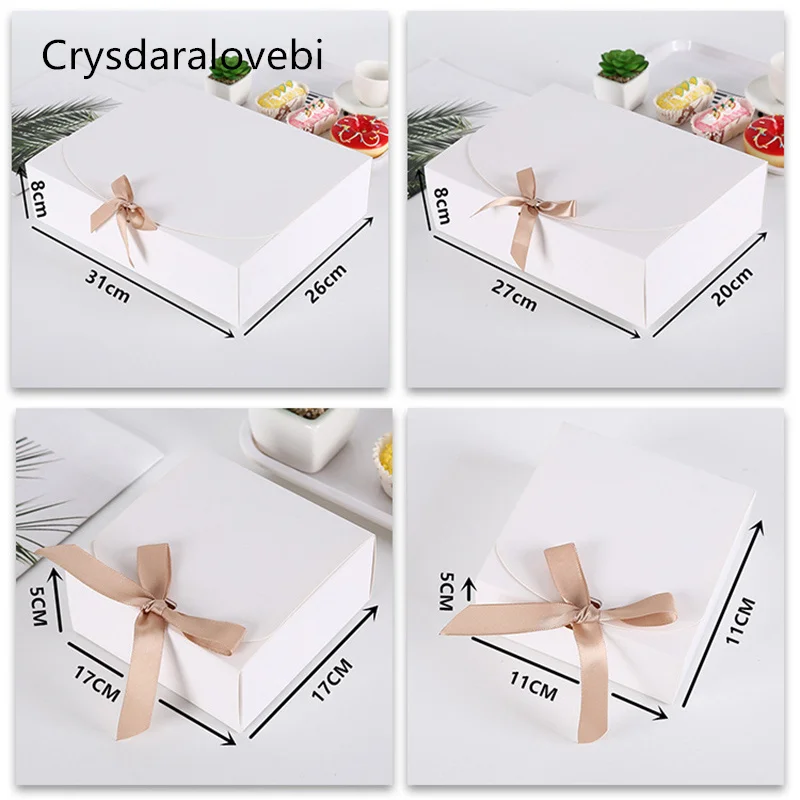 1020 шт, Подарочная коробка из крафт-бумаги с бантом, упаковка для выпечки, белая коробка для торта, Рождественский Декор, свадебные подарочные картонные коробки, вечерние принадлежности
