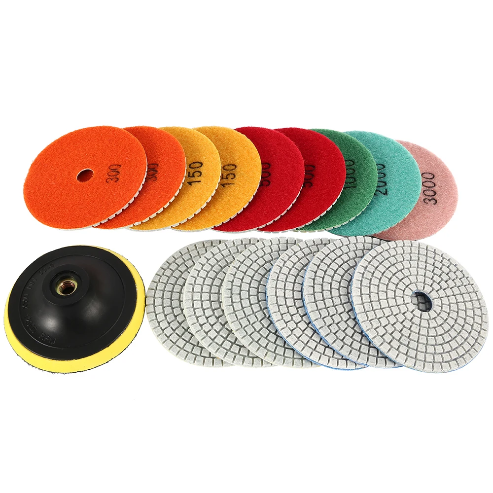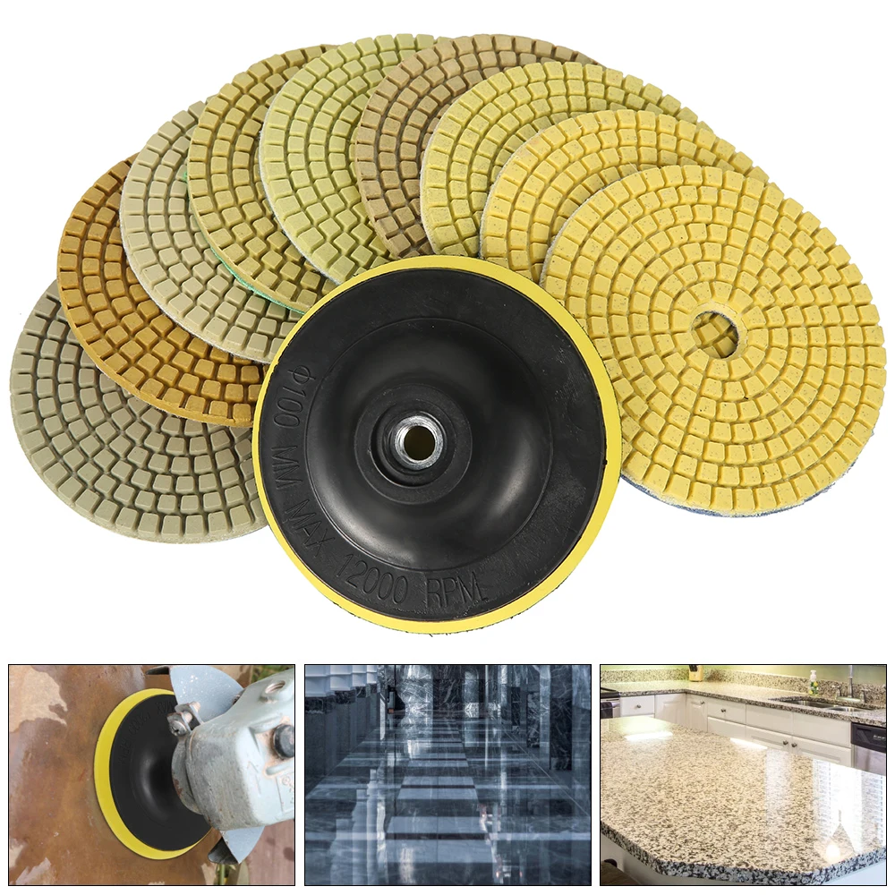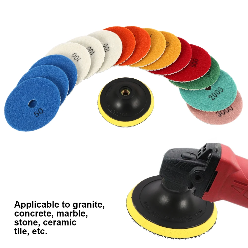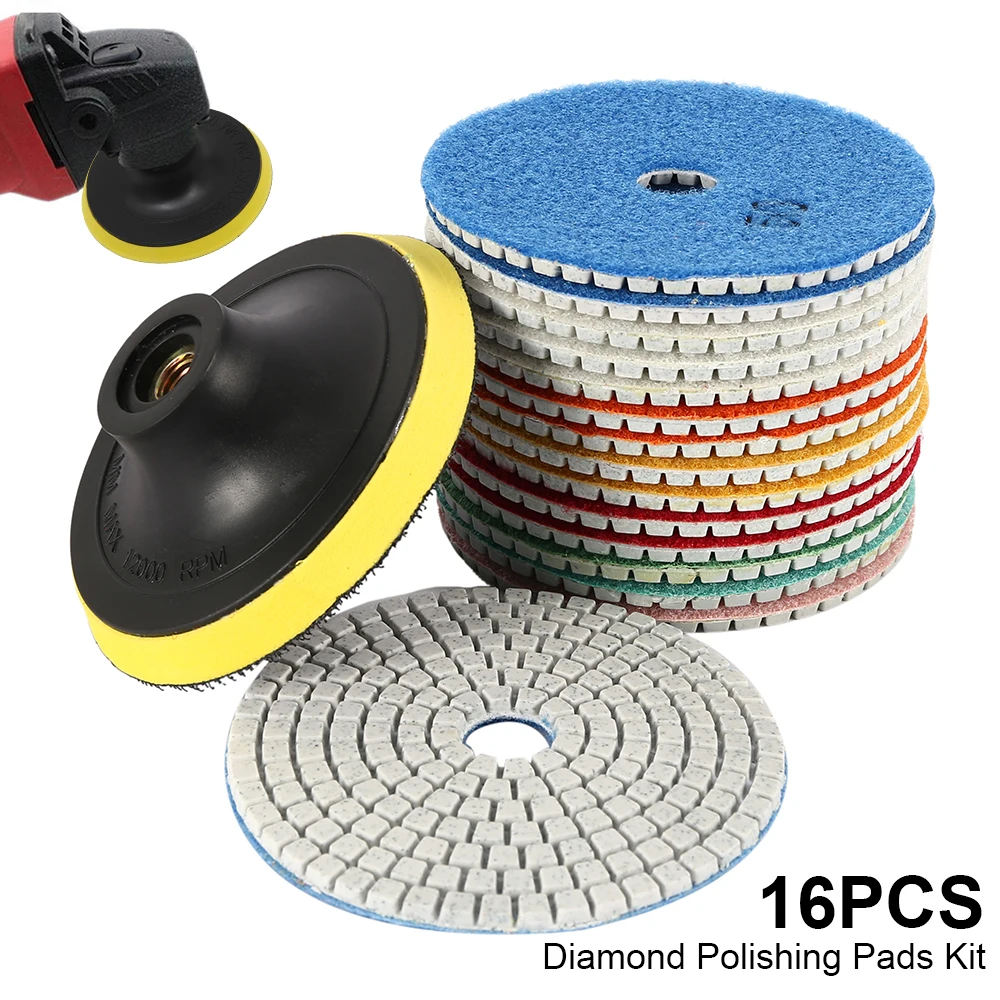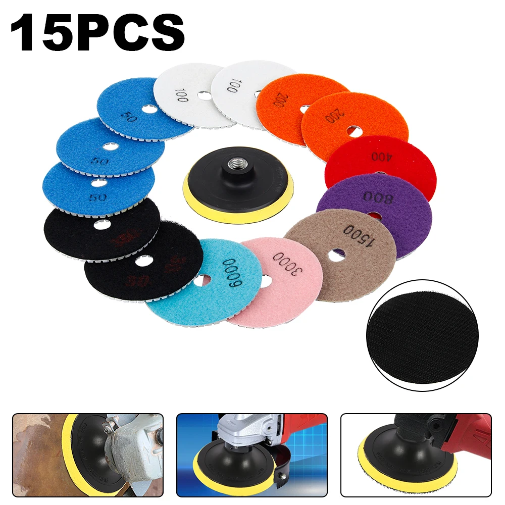 Алмазные полировальные диски 15 шт.компл., 4 дюйма, 100 мм, шлифовальные диски для сухой и влажной полировки гранита, мрамора, бетона, камня, ручные инструменты
