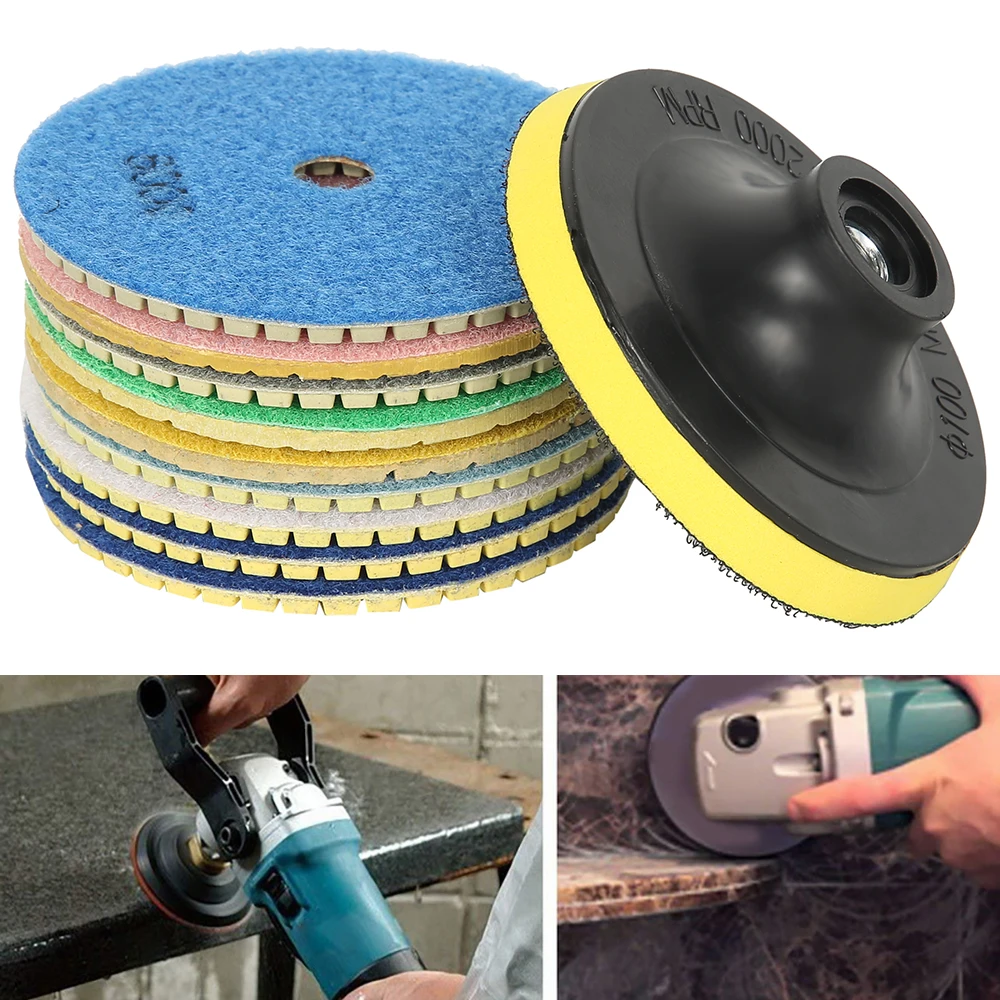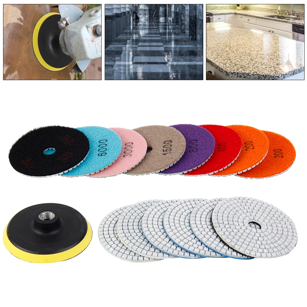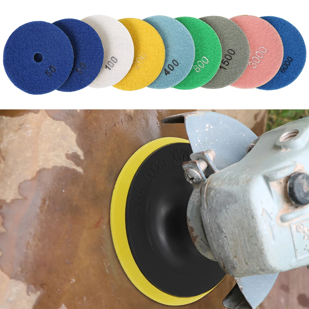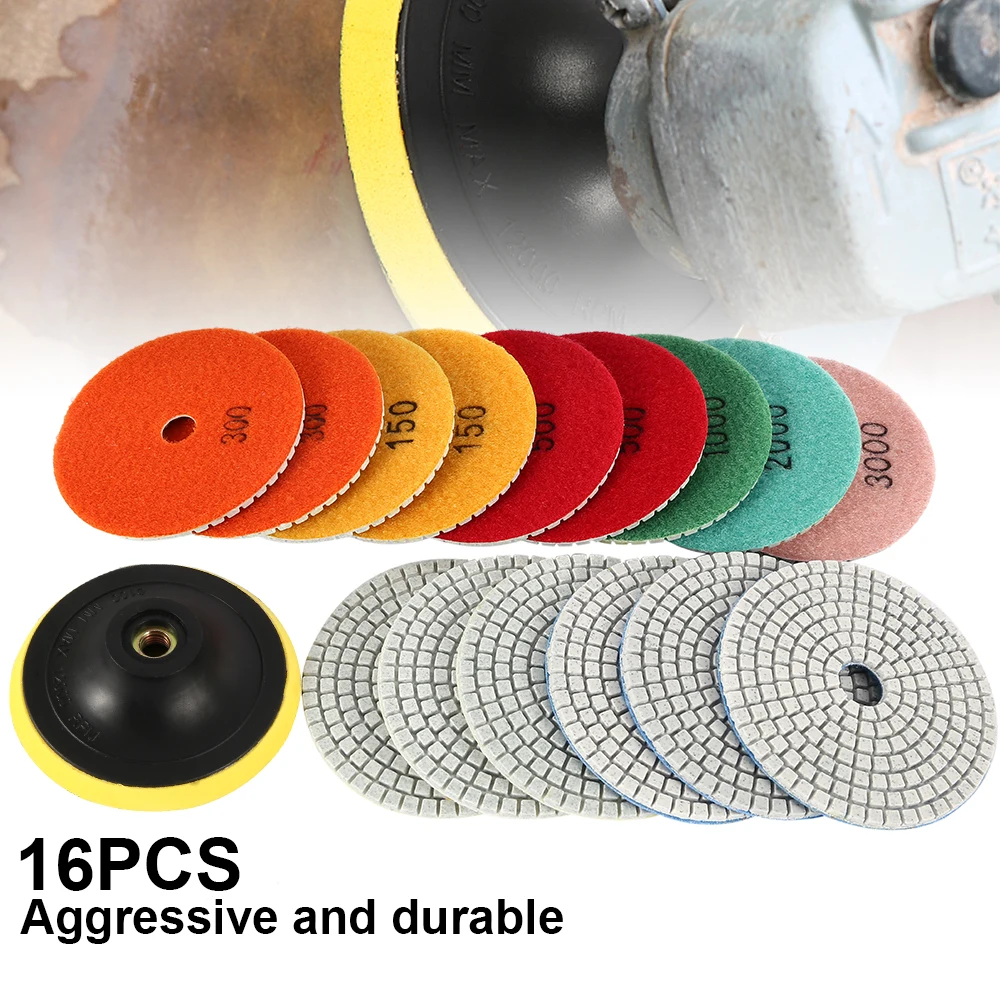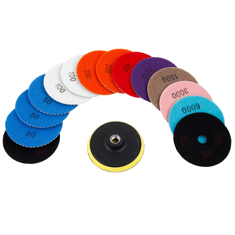 Алмазные полировальные диски 15 шт.компл., 4 дюйма, 100 мм, шлифовальные диски для сухой и влажной полировки гранита, мрамора, бетона, камня, ручные инструменты