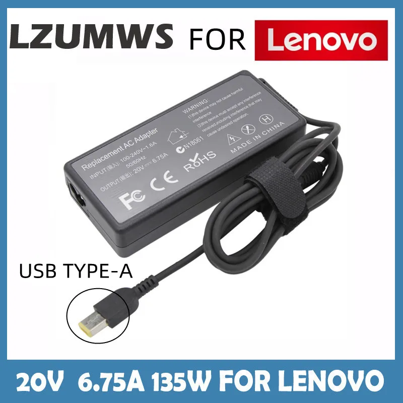 Зарядное устройство USB для ноутбука, 20 в, 135 а, Вт, адаптер переменного тока для Lenovo YOGA720-15 T540p, T440p, Y50-70 G5005, Y520, Y7000, Y700-14 W550