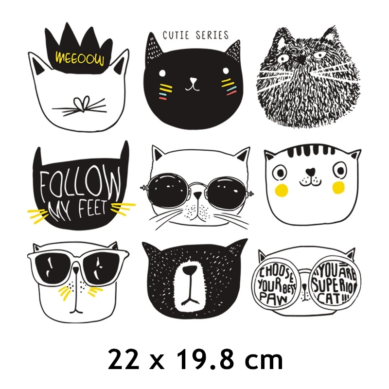 Термотрансферы для одежды с черно-белым котом Смешные нашивки, накл...