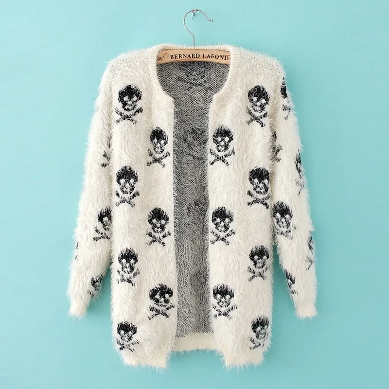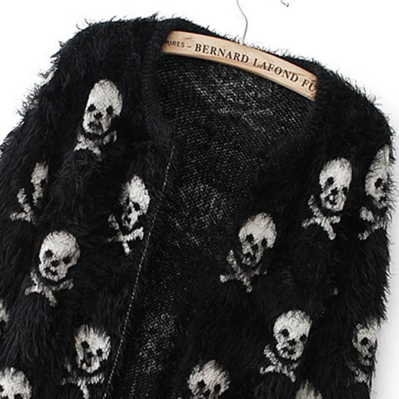 Вязаный кардиган осень новый свитер корейский женский череп мохеровые вязаные кардиганы Кардиган Куртка Кардиган с черепом женщин