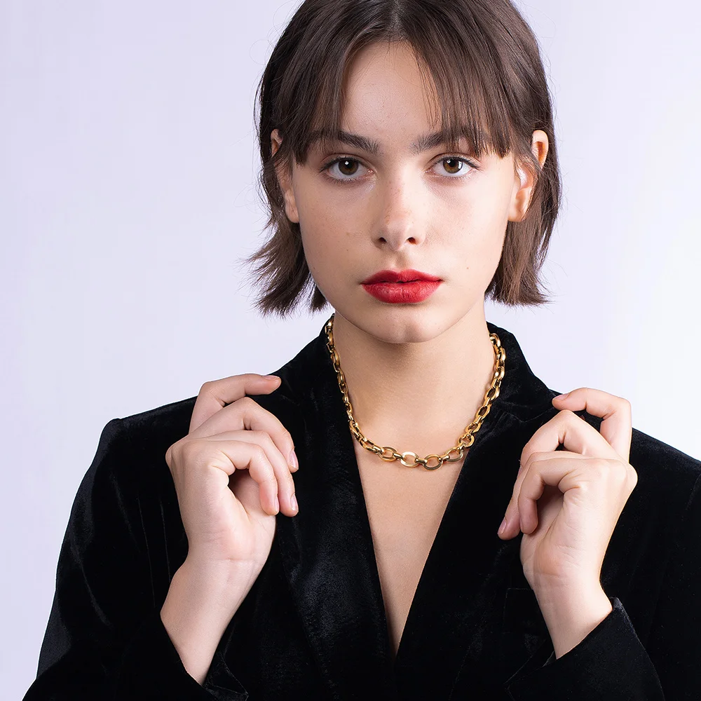 Ожерелье женское из нержавеющей стали золотистого цвета в стиле панк