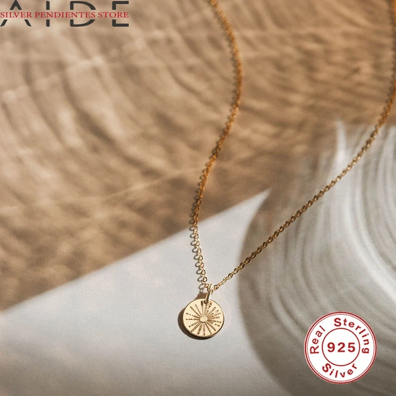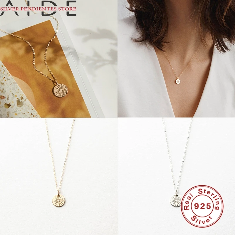 AIDE модное ожерелье для женщин 925 стерлингового серебра ювелирные изделия женские круглые брендовые подвеска, золотая цепочка Naszyjnik