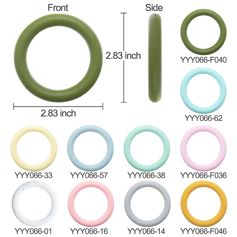 item:silicone teether shape:round size:70*70*10mm weight:17.9g color:pink/blue/mint/red/yellow/gery... fashion:yes use 1:DIY Accession use 2:pacifer chian DIY accession