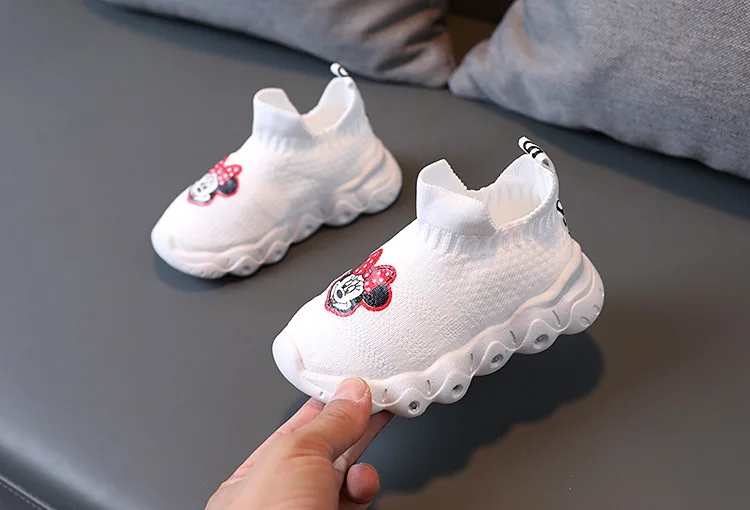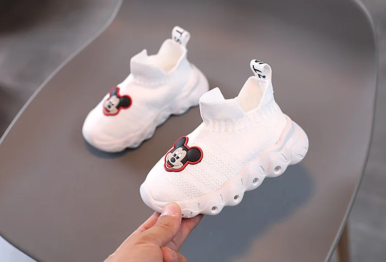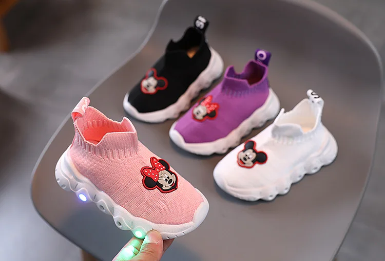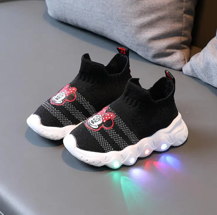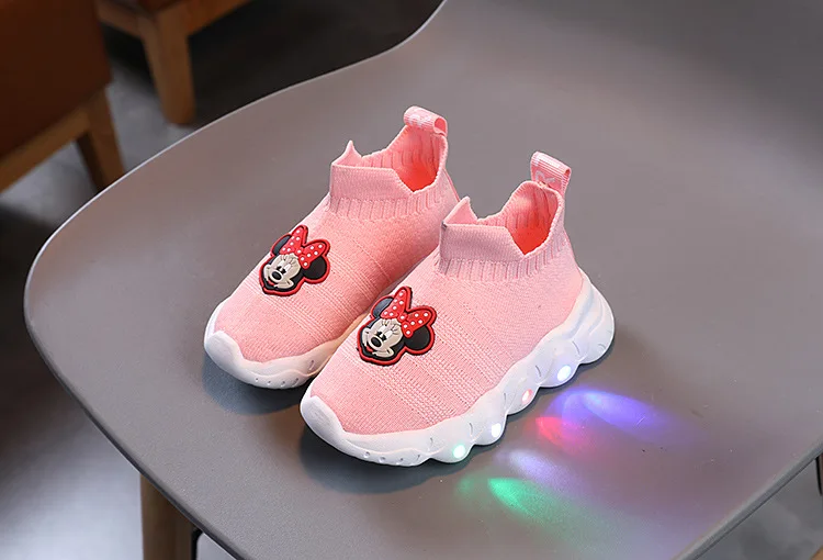 Светящиеся кроссовки для мальчиков и девочек, светодиодная обувь с Диснеем Микки Мауса, светящиеся кеды для малышей, обувь с подсветкой
