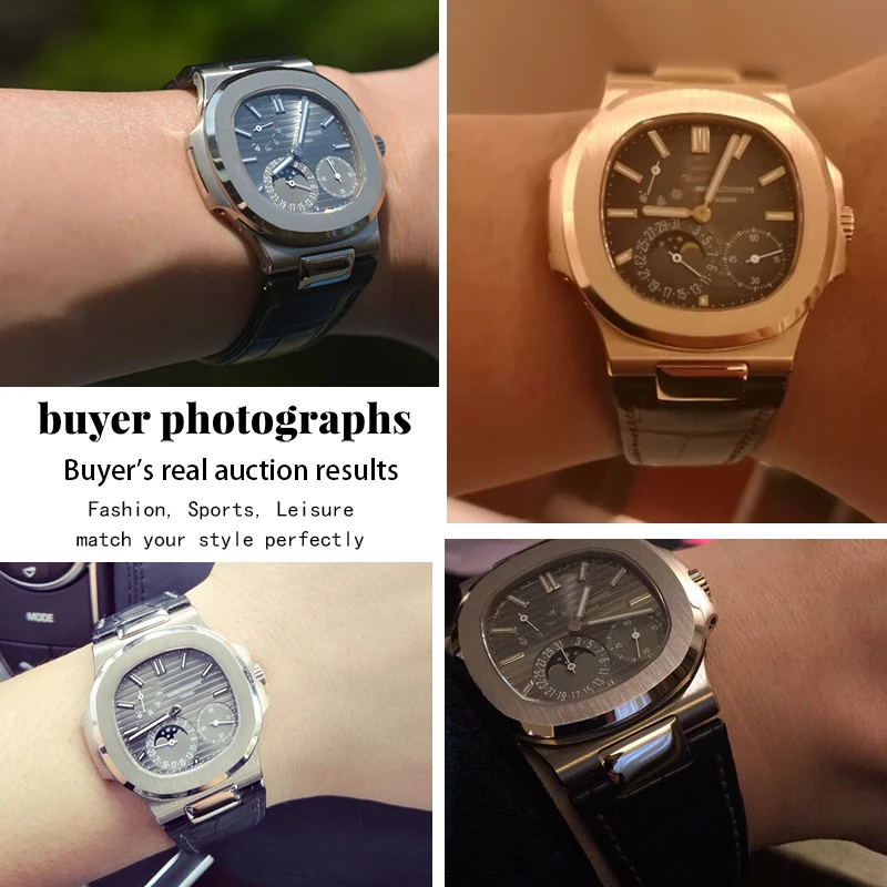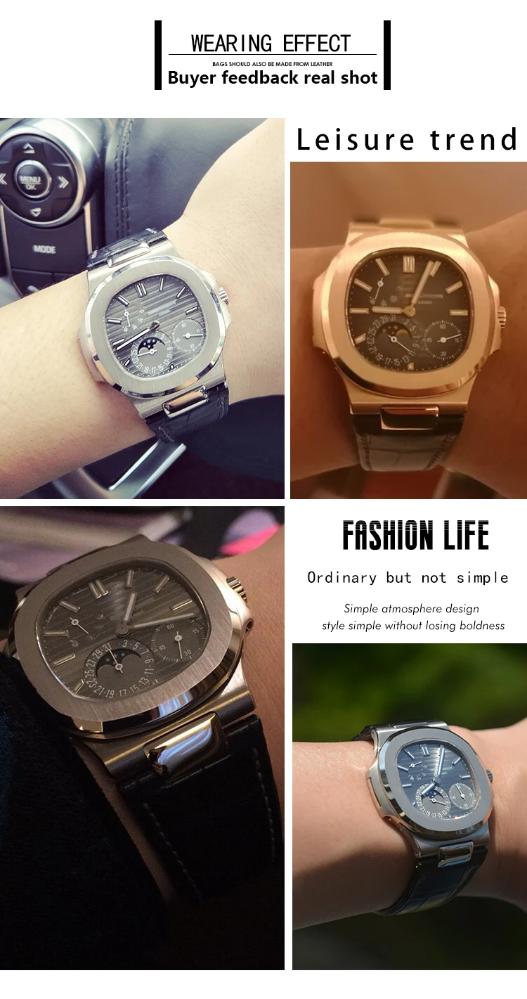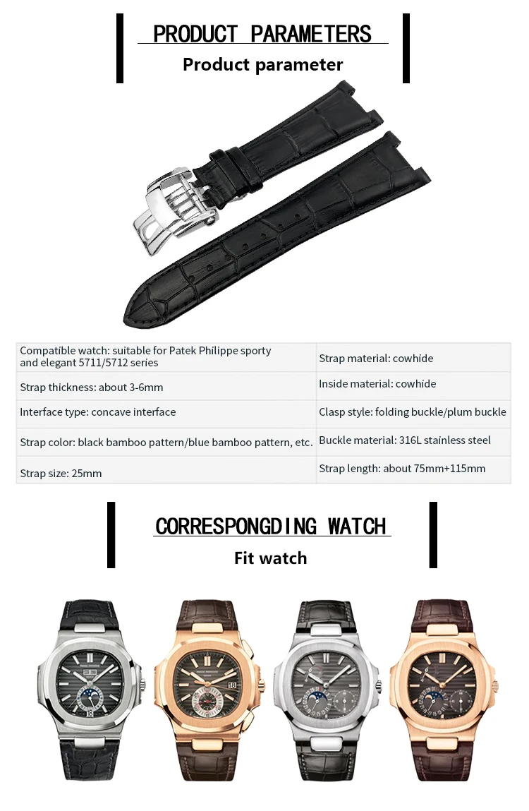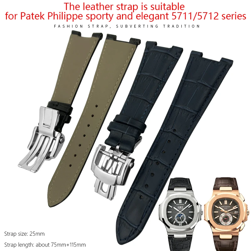Кожаный ремешок для часов в форме выемки, черный синий коричневый браслет для мужских браслетов Patek Philips Nautilus, 25 мм