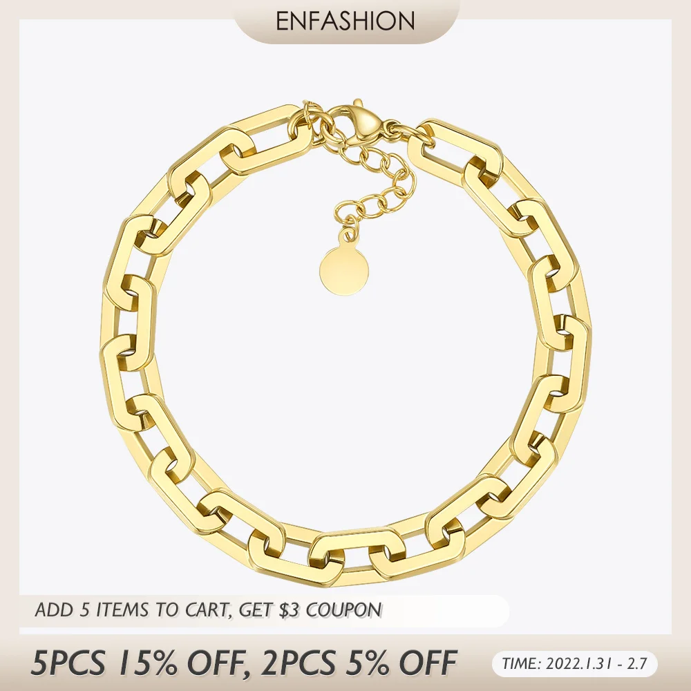 Женский браслет с цепочкой ENFASHION, золотистый браслет с квадратными звеньями из нержавеющей стали 2020, подарок на Рождество, B2209
