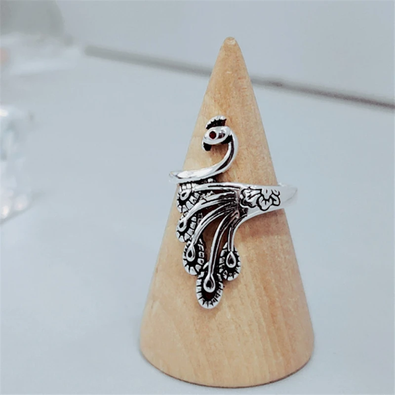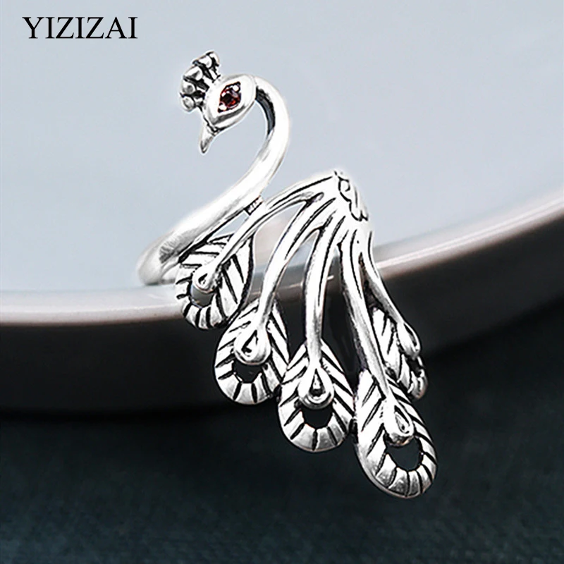 YIZIZAI Новые простые принадлежности Стиль Ретро тайское серебристого цвета Творческий павлин, обручальное кольцо для женщин ювелирные изделия популярный с украшением в виде кристаллов Открытие Кольца