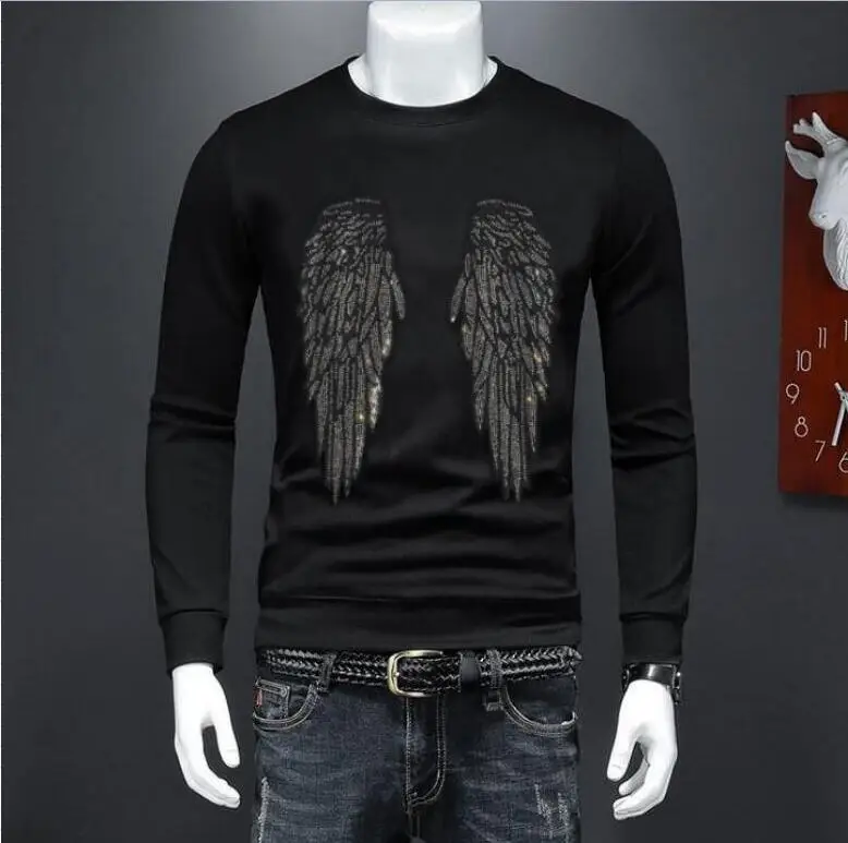 Стразы, мужские толстовки, уличная одежда, теплый мужской свитер с ...