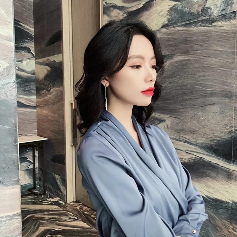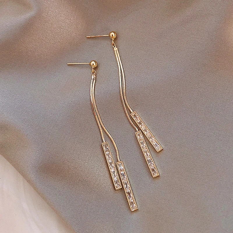 Женские длинные серьги-гвоздики, корейские серьги из нержавеющей ст...