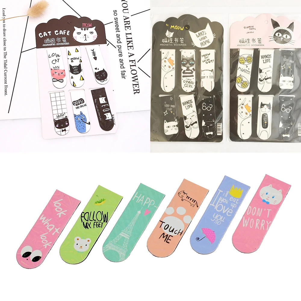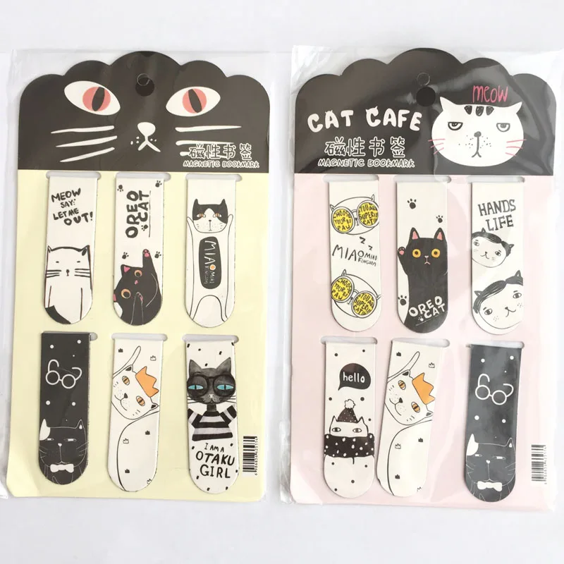 6 шт.компл. Cactus школьные и офисные принадлежности Oreo Cat магнитные закладки канцелярские принадлежности бумажный зажим