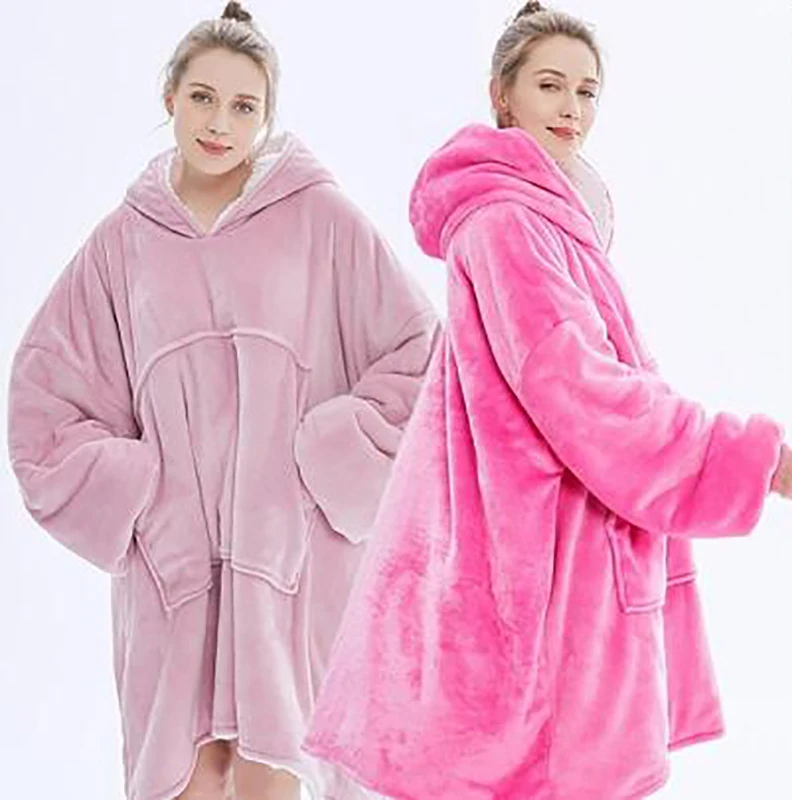 Зимнее теплое одеяло с капюшоном для телевизора, уютное Флисовое одеяло с капюшоном для дивана, утяжеленное одеяло с рукавами для взрослых и детей, банный халат, верхняя одежда