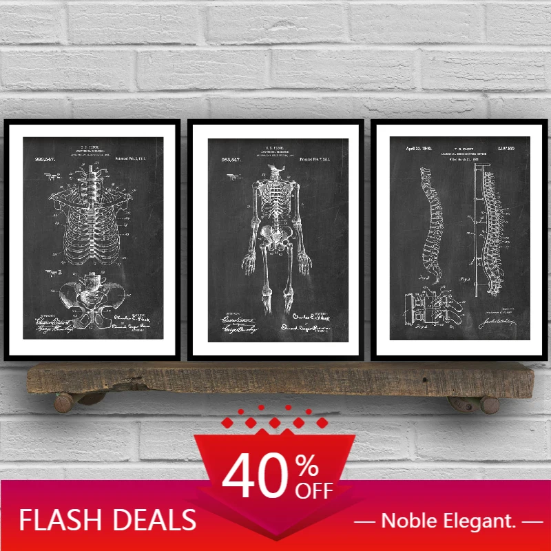 Человека анатомический Скелет Wall Art Холст Картина Винтаж Плакаты...