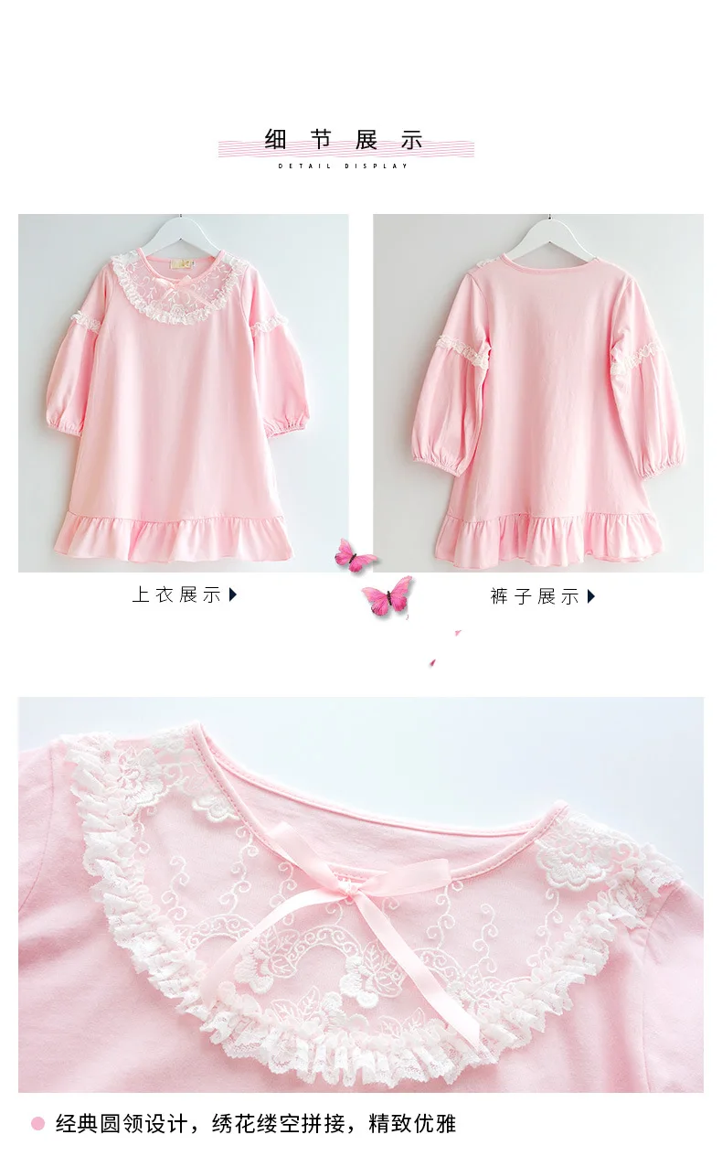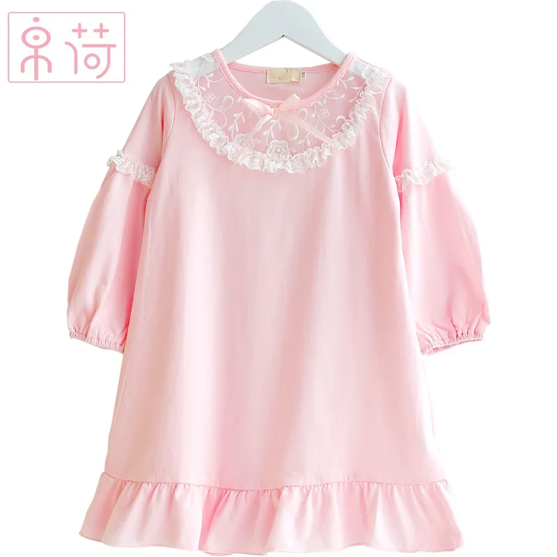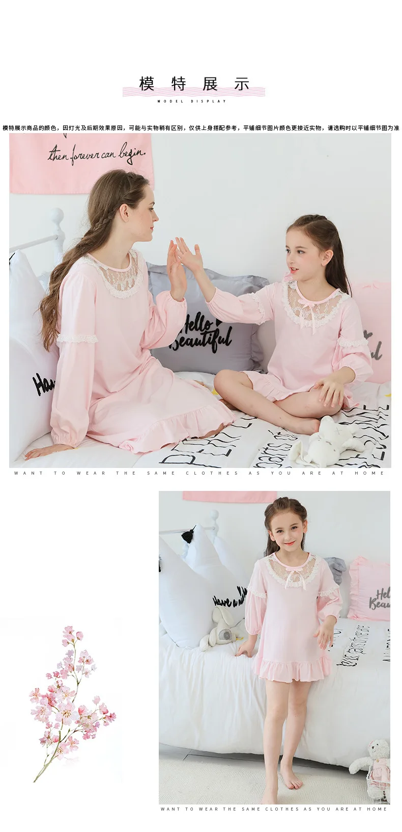 Летняя ночная рубашка принцессы для маленьких девочек, тонкая пижама из 100% хлопка с длинным рукавом, домашняя одежда для детей, От 2 до 14 лет