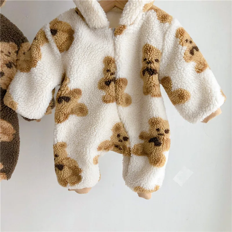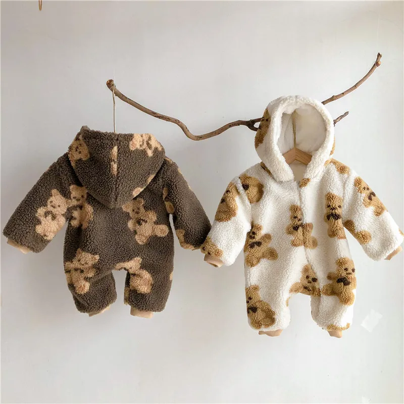 Зимнее пальто для новорожденных Детский мультяшный медведь печати кофты из плотного флиса, комбинезон с капюшоном, Одежда для новорожденных мальчиков, теплая одежда для детей, одежда для детей ясельного возраста; Для девочек; Теплые Комбинезоны