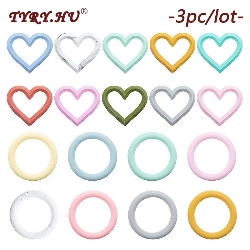 TYRY.HU 3 шт. кольцо/Сердце Силиконовые Бусины BPA бесплатно подвеска в виде ребенка прорезыватель ожерелье из пищевого силикона DIY аксессуары для изготовления ювелирных изделий
