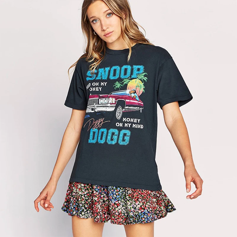 Футболка sunfiz YF в стиле Харадзюку с принтом автомобиля, свободная хлопковая футболка, Винтажная летняя крутая футболка с коротким рукавом, Женская Повседневная Уличная одежда, Топ