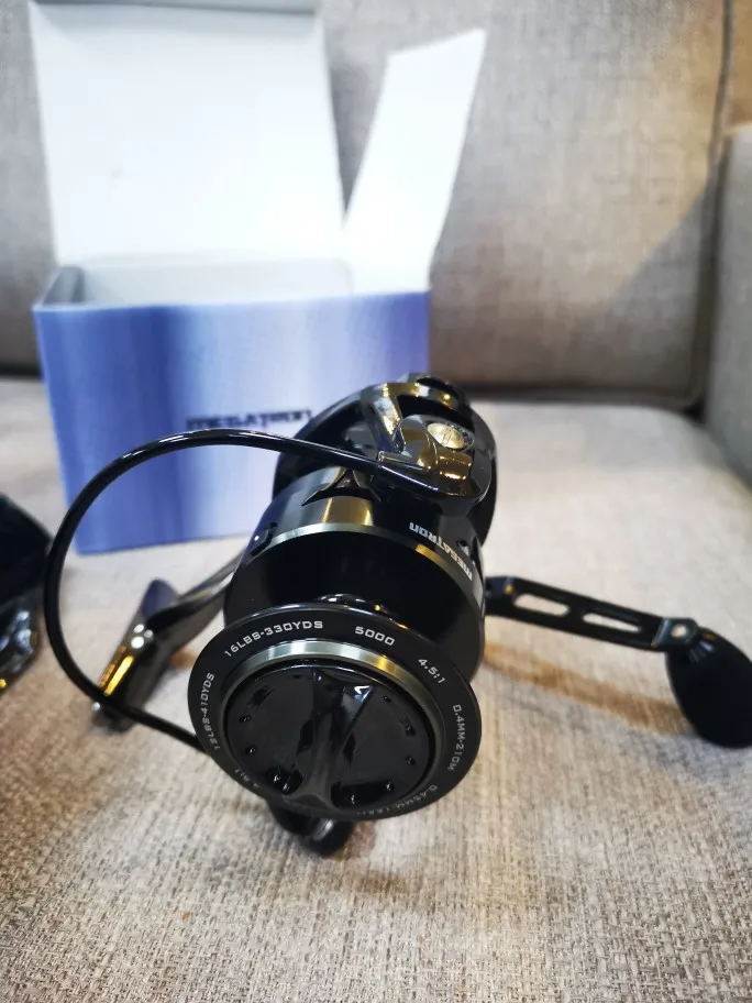 Добрый день. Приобрёл 5000 серию. Достака быстрая, в течение недели, IML, курьер до двери. Катушка за свою цену отличная. Стильная, прочная, люфтов нет, фрикцион чëткий, вмеру тяжелая ("тяжелая, значит надежная, если не выстрелит, можно ударить по голове" (с) ) Немного смутила непривычная "прозрачная" шпуля. Нужно будет чаще обслуживать, грязь, песок попадет внутрь обязательно. В целом доволен. Рекомендую.