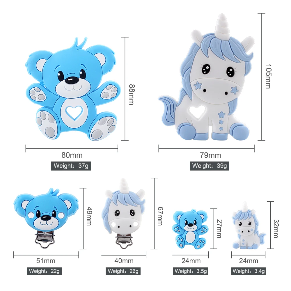 Детские Силиконовые Прорезыватели для зубов, бусинки, клипсы, мини, единорог, медведь, пищевая, для детей, жевательные прорезыватели для зубов, медсестры, Мультяшные животные, сделай сам, пустышка, цепь