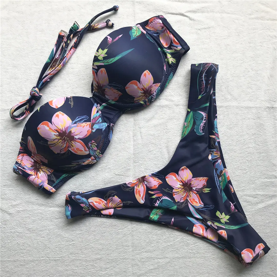 2021 цветочный бикини пуш-ап купальный костюм женский комплект из д...