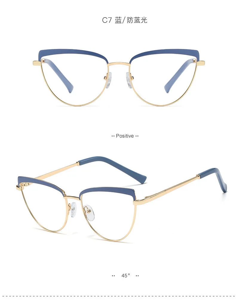 Винтажный кошачий глаз, анти-синий светильник, металлические оправы для очков, мужские и женские оптические модные компьютерные очки, прозрачные линзы, очки UV400