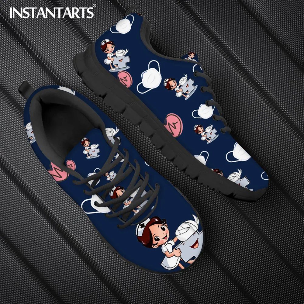 Женские дышащие кроссовки INSTANTARTS, Мультяшные кеды для медсестер, медицинский хирургический бренд, на шнуровке, плоская подошва
