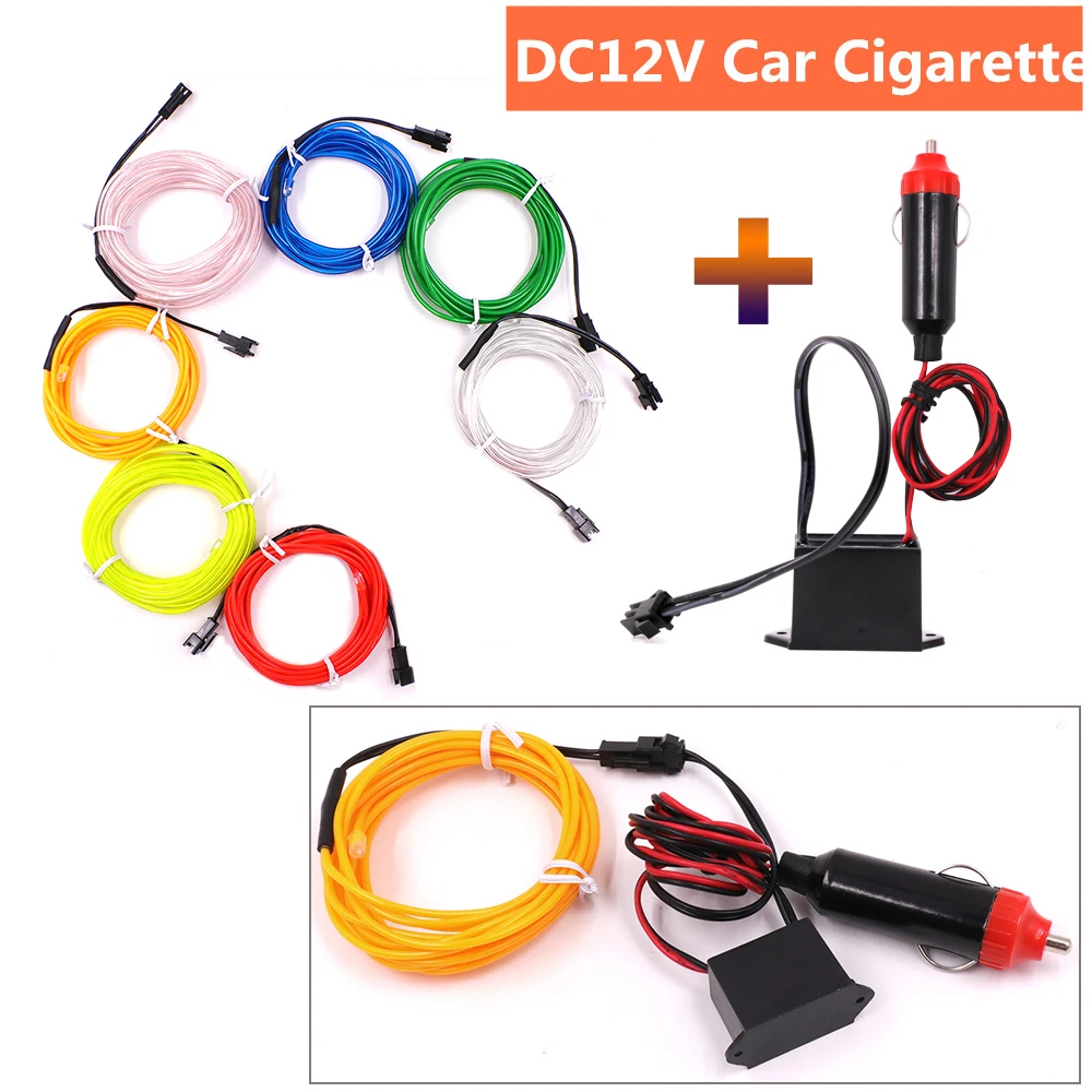 Свечение EL провода Строка автомобильного прикуривателяAA Батарея гибкие неоновые светодиодные световые полоски свет для обуви Одежда декоративный светильник