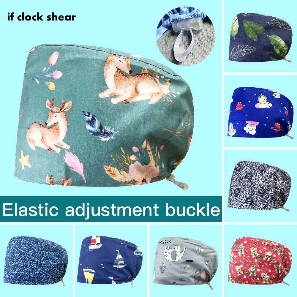 Шапка для медсестры с цветочным узором, регулируемая шапка с разным...