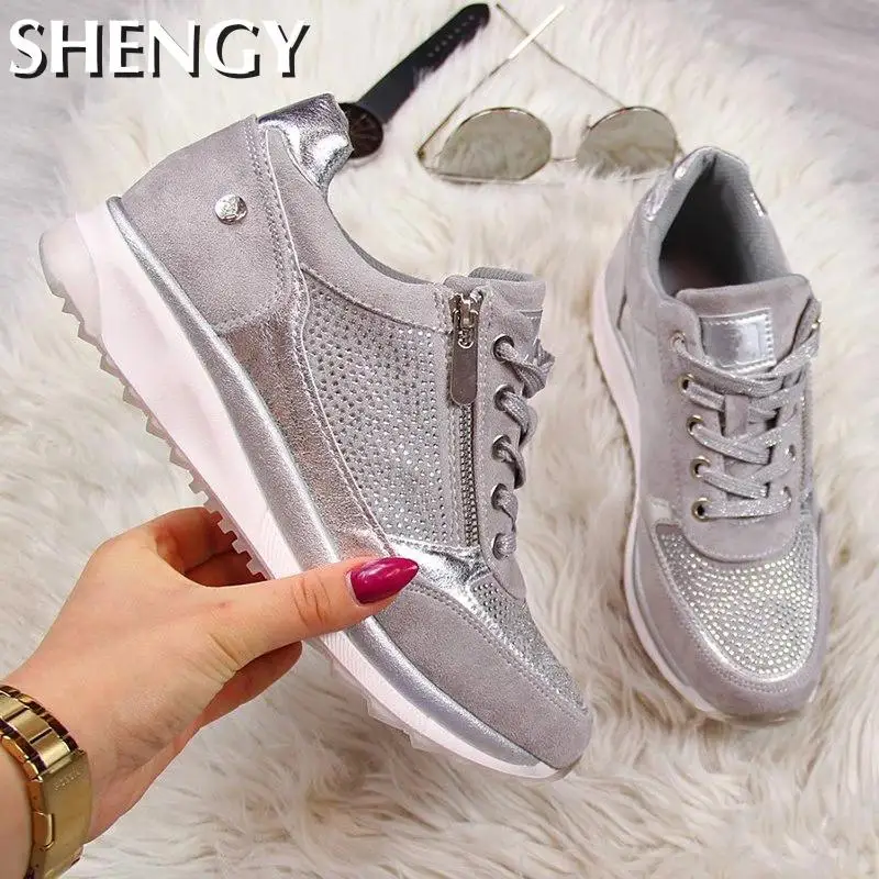 Кроссовки SHENGY женские, Вулканизированная подошва, с блестками