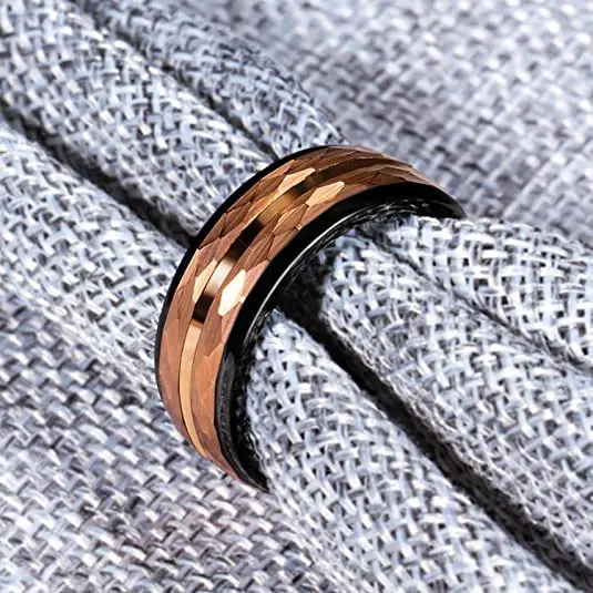 Материал: Карбид вольфрама Отделка: молоток и Высокая полировка Ширина: 8 мм Цвет: черный и золотой Вставка: нет Доступные размеры: 6-15, включая половинные размеры. Устойчивость к царапинам Водонепроницаемый Обручальное кольцо с забитой текстурой черного и золотого цвета