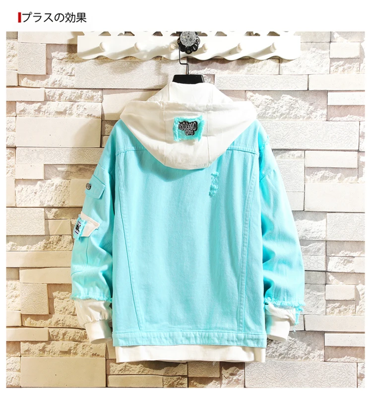 Мужская джинсовая куртка с капюшоном, розовая, черная или зеленая приталенная куртка-бомбер в стиле хип-хоп, рваная джинсовая куртка в уличном стиле, осень 2022