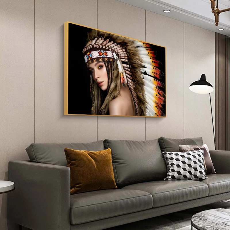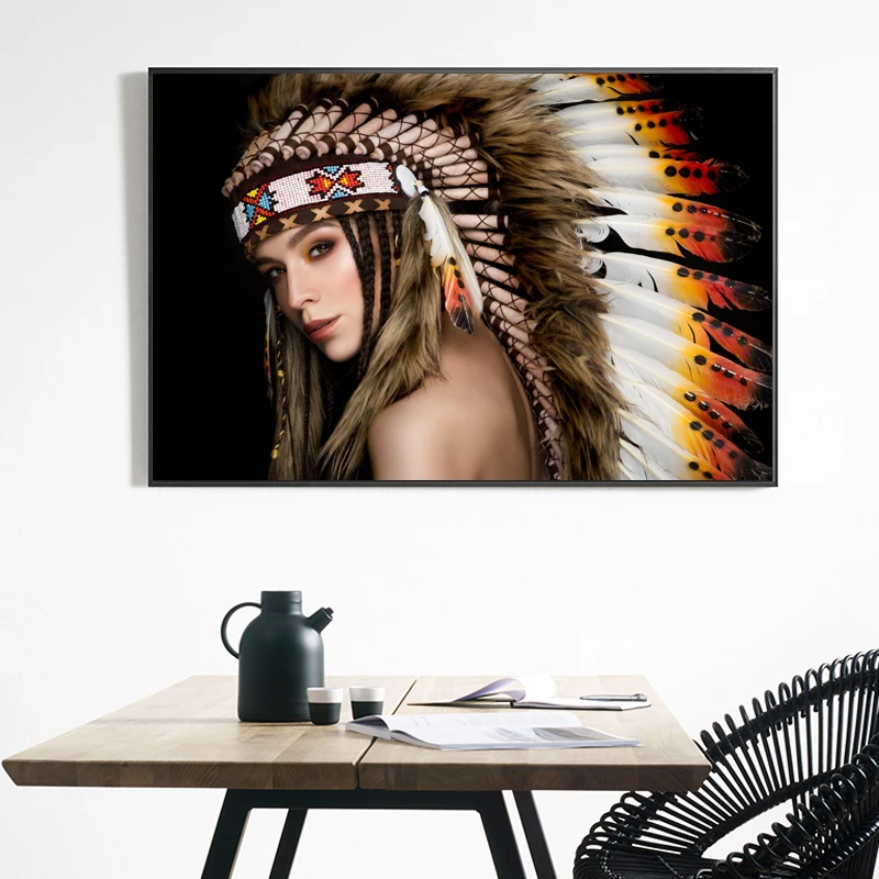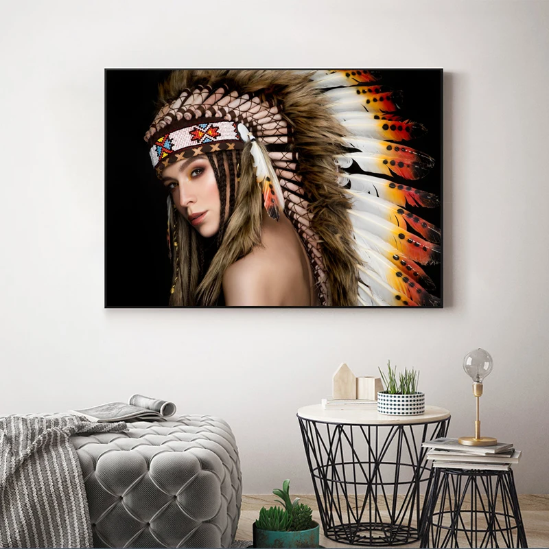 Плакаты и принты на холсте с перьями для женщин, индийская девушка, Картина на холсте для украшения гостиной