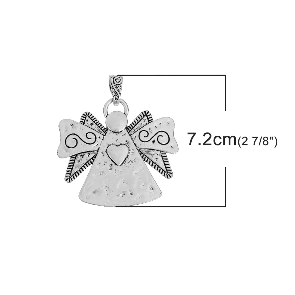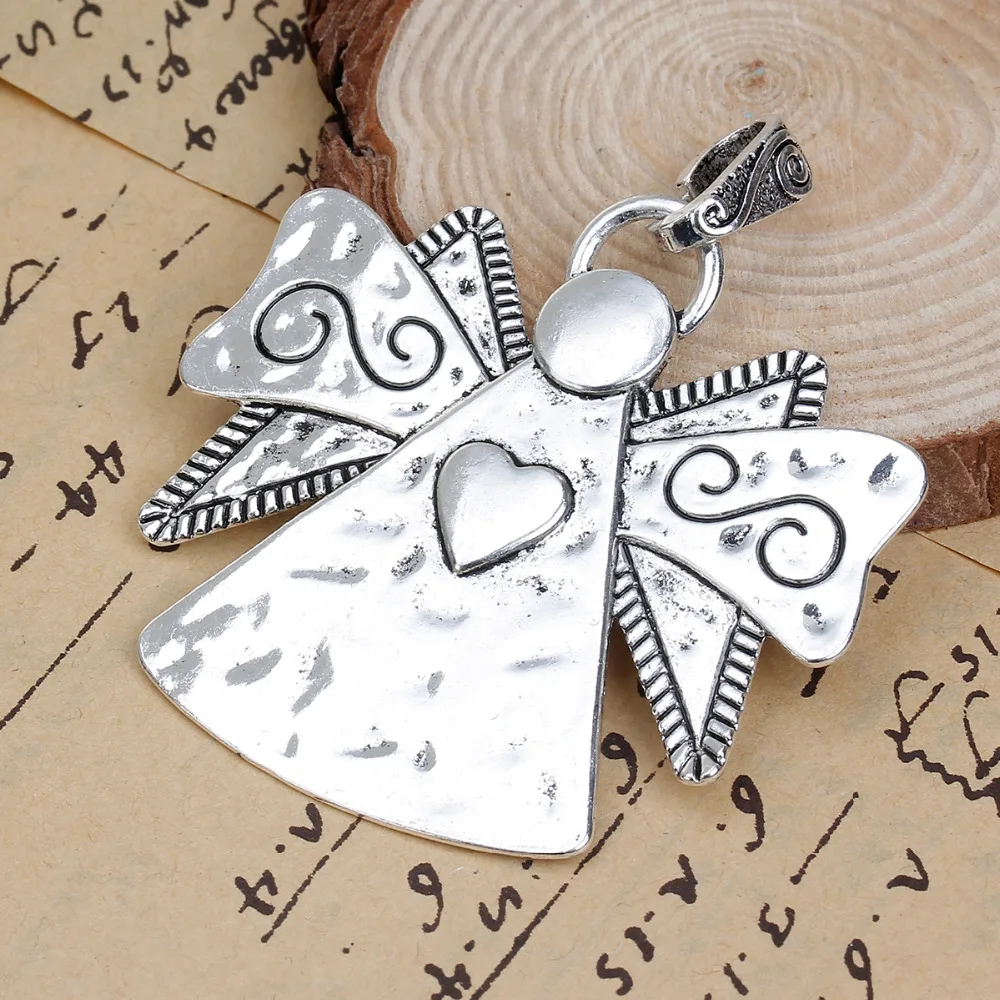 Лидер продаж, комплект из 2 предметов, ангел кулон для колье ручной работы из цинкового сплава Подвески из серебра в виде крыльев в форме сердца DIY Компоненты подвески