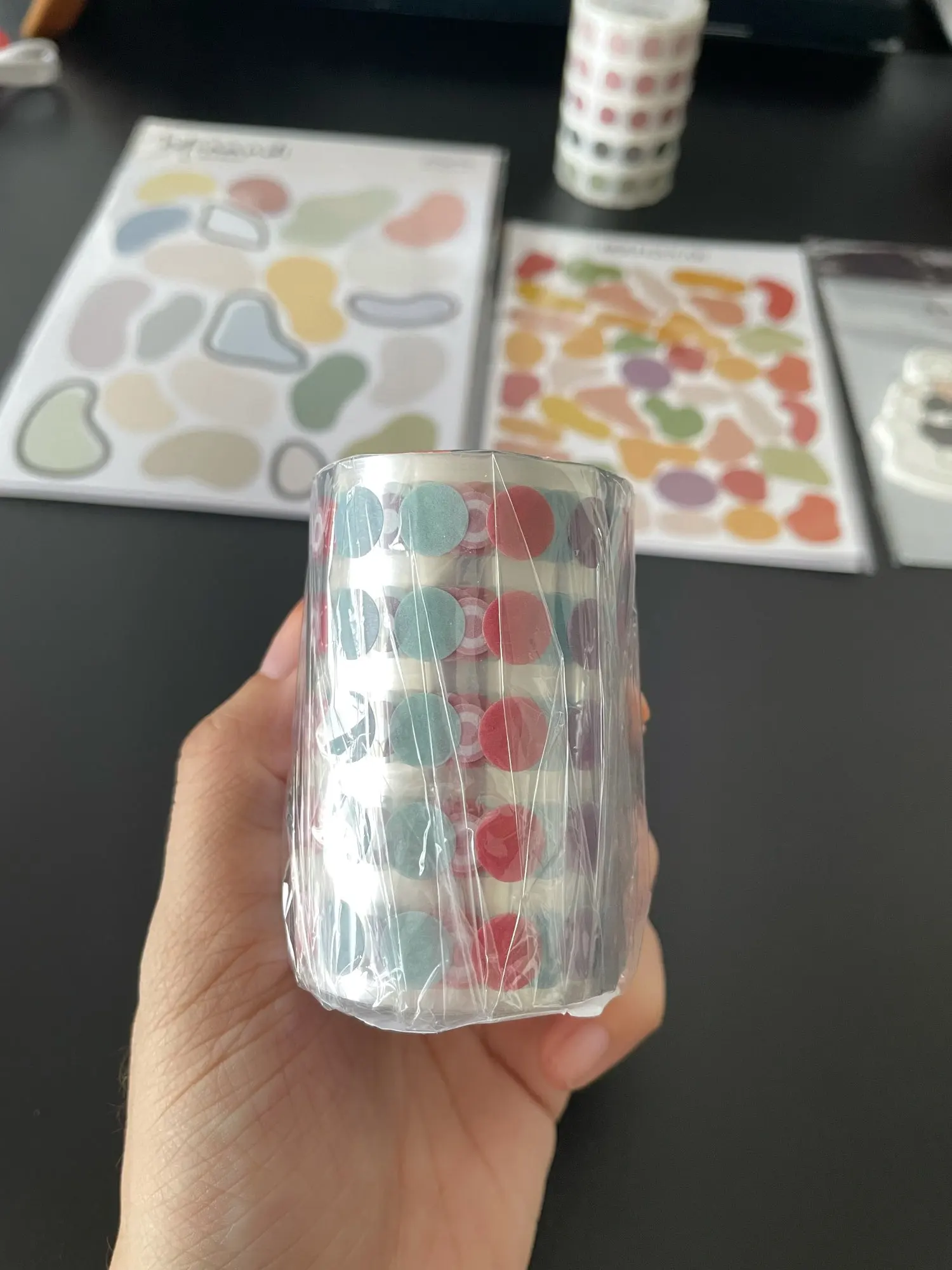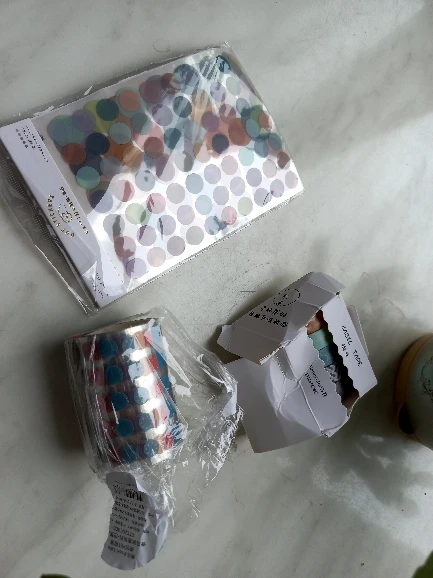 Это очень маленькие круглые наклейки washi tape, самая широкая-0,8 см полупрозрачная и матовая, они выглядят как пастельные тона, поэтому они дают винтажный воздух. CAME well packed and Took 20 days to arrive.