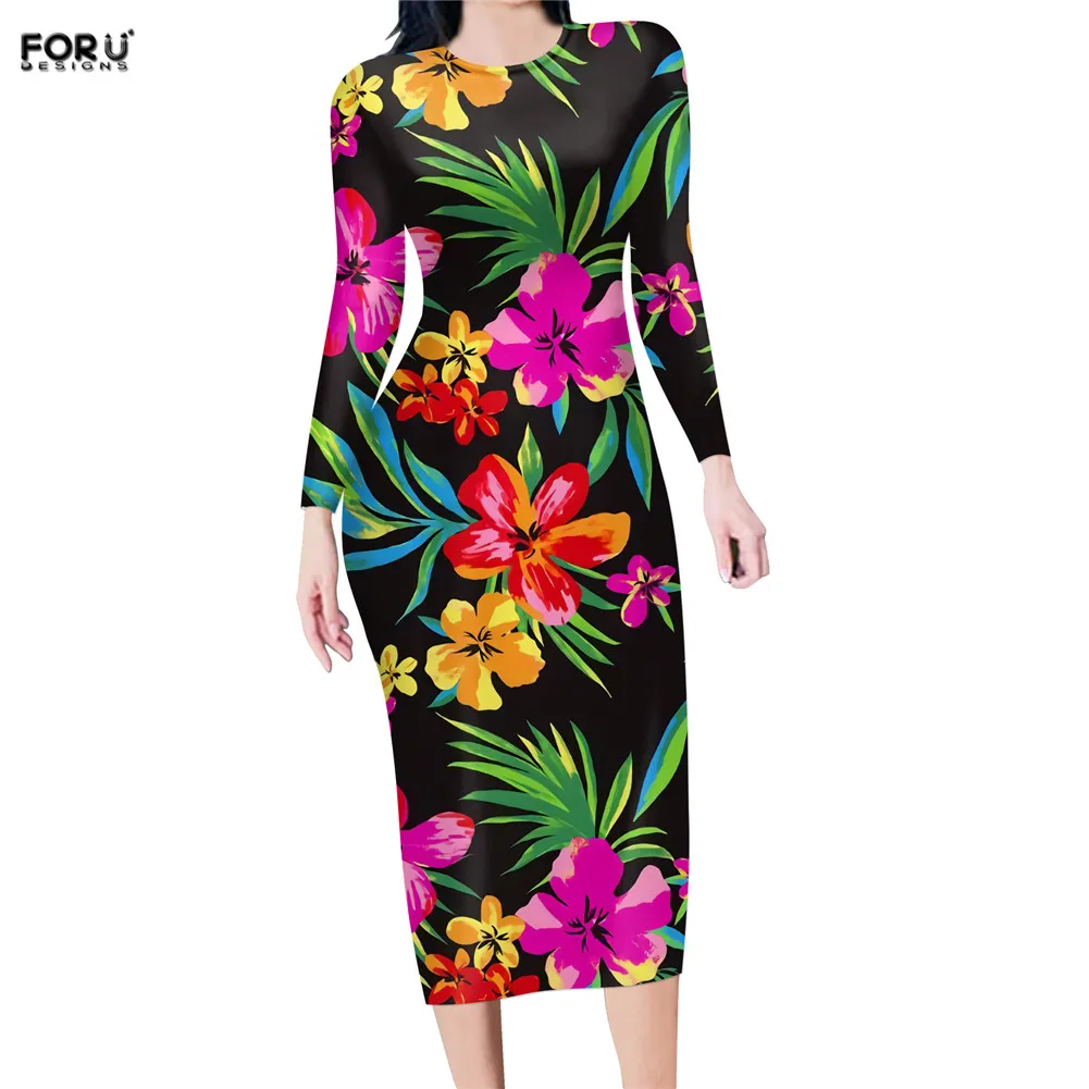 FORUDESIGNSженские с круглым вырезом в стиле хип посылка платье Гавайские цветы шаблон сексуальное облегающее вечерние клуб уличный стиль длинные Длина vestido