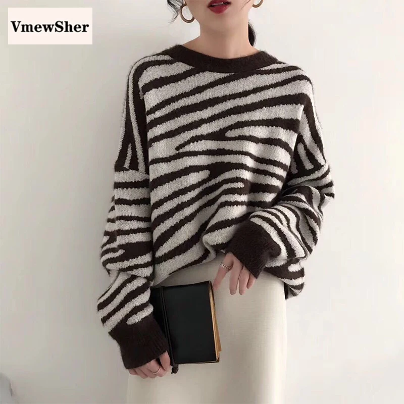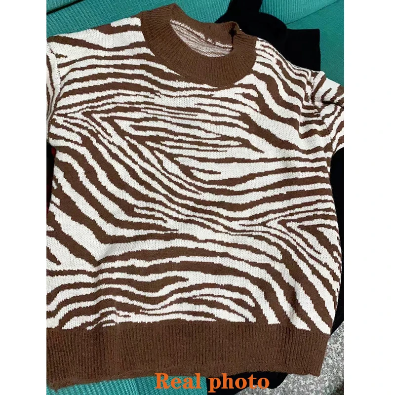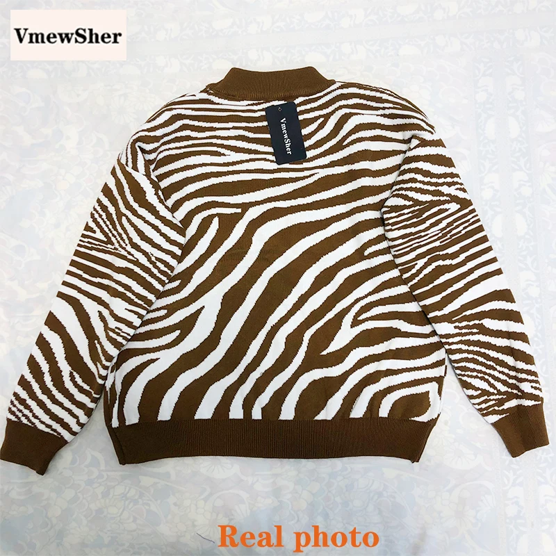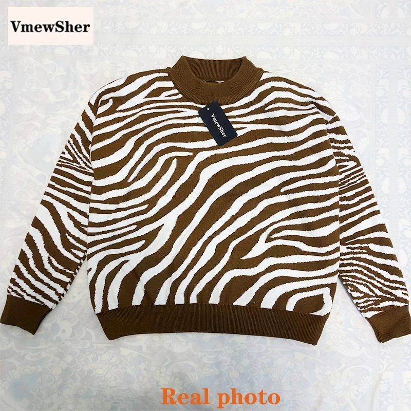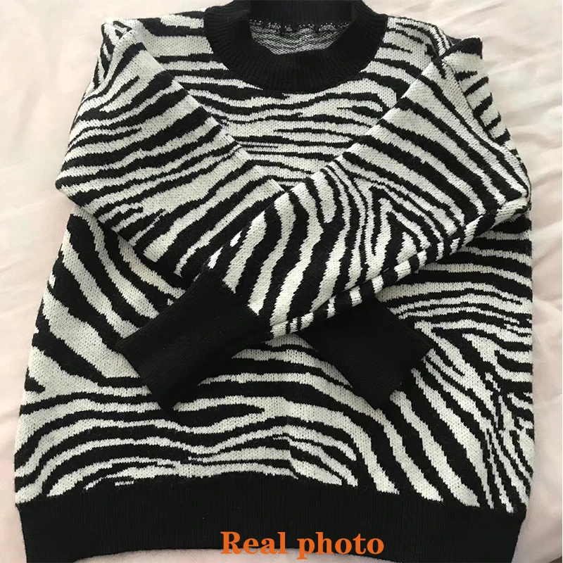 Полосатый вязаный женский пуловер с принтом зебры, Свитера 2020, ос...