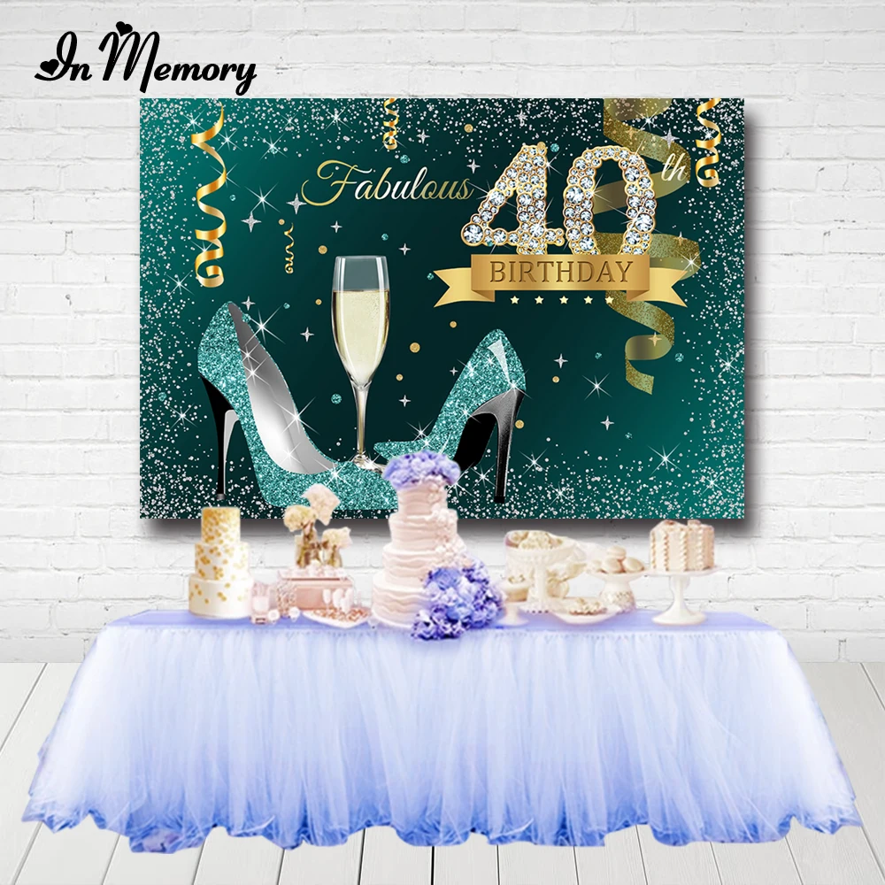 Фотофоны InMemory для взрослых, бирюзовые блестящие каблуки, дамские шампанские женские, праздничные фоны на 40-й день рождения, на заказ