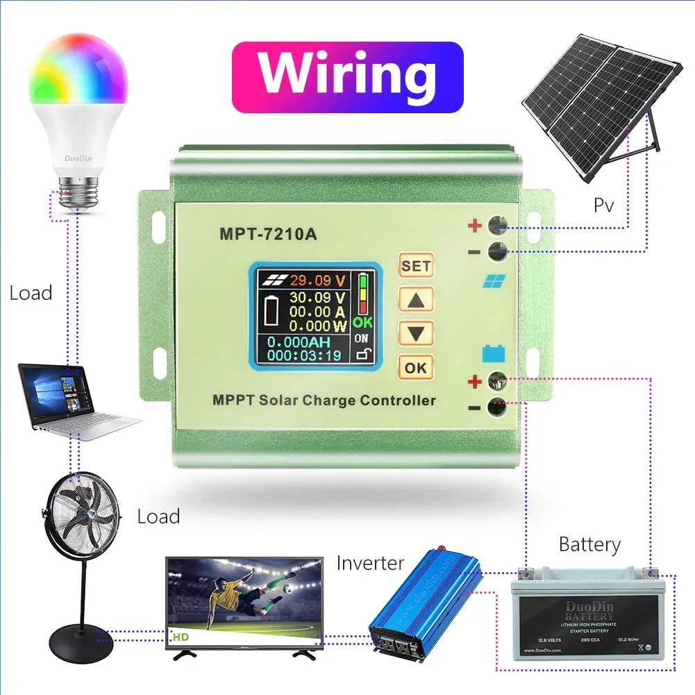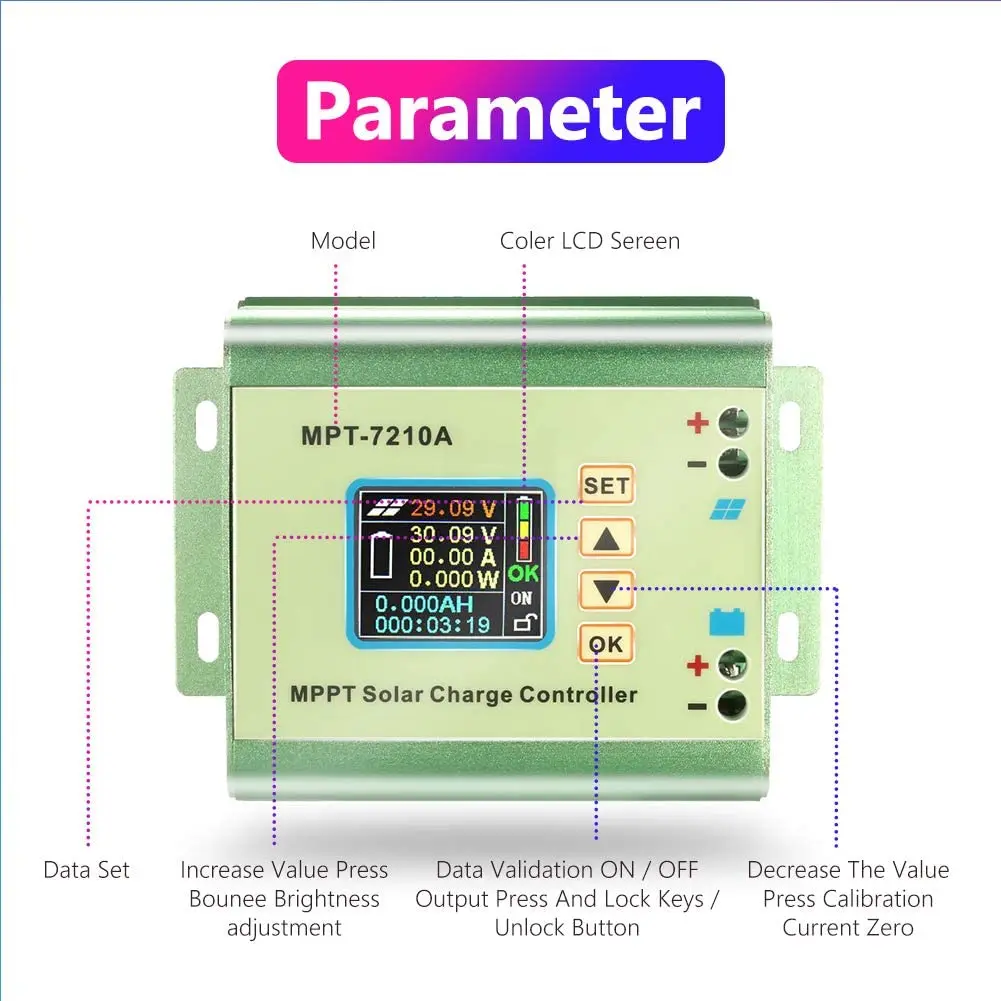 MPPT Контроллер заряда солнечной батареи MPT-7210 литиевая батарея Boost 0-10A ЖК-контроллер солнечной батареи Солнечная панель для батареи 243648V60V72V