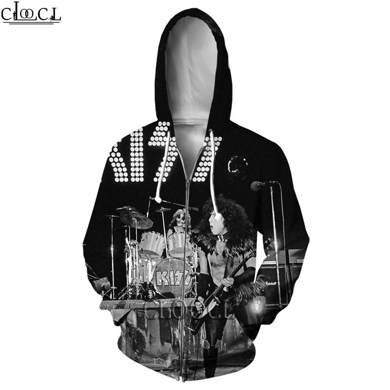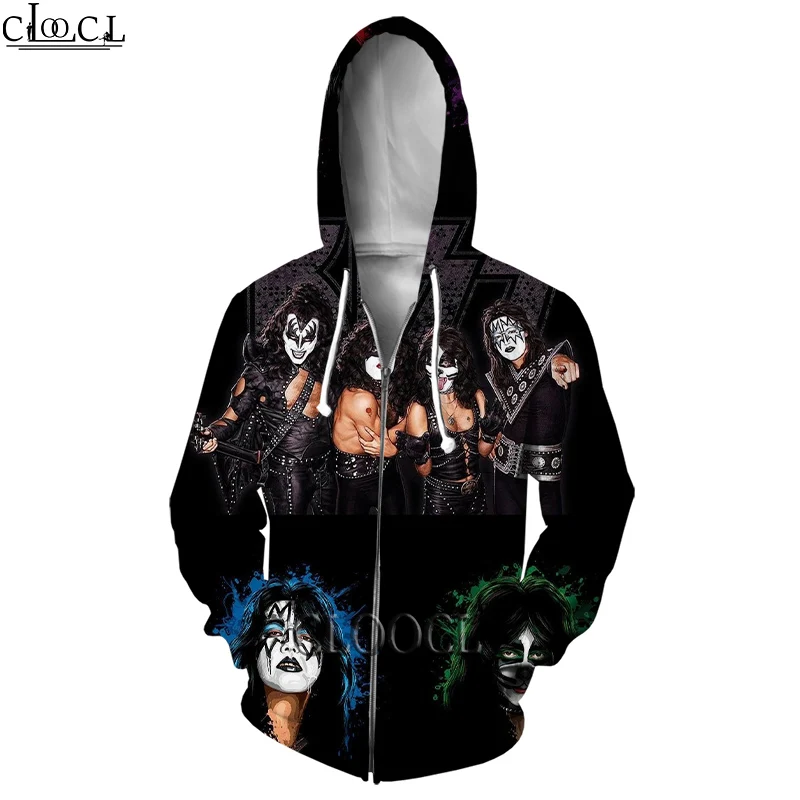 Толстовки HX Rock Metal Kiss Band, хит продаж, модные повседневные толстовки на молнии с 3D-принтом, для мужчин и женщин, пуловеры в стиле Харадзюку