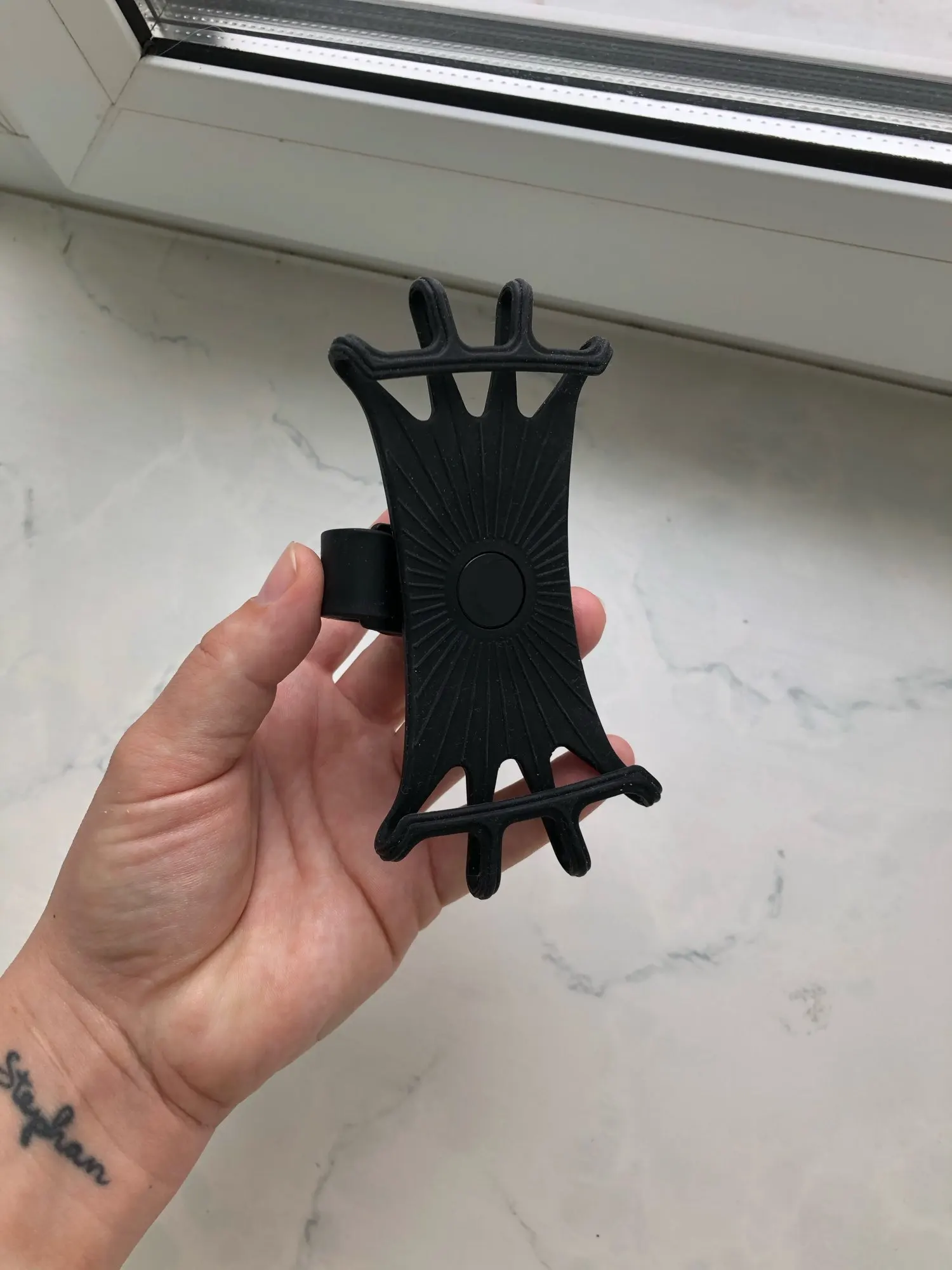 Обладенная штучка. Очень легкая и удобная! То,что искала на коляску для долгих прогулок с малышом. Просматривая фильм-время бежит незаметно. Можно поставить телефон как по горизонтали,так и по вертикали. Держит телефон просто отлично,за счет резиновых лент. У меня IPhone X,но думаю,что и по размеру больше телефон легко влезет. И маленькие тоже отлично подойдут.