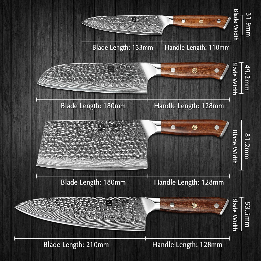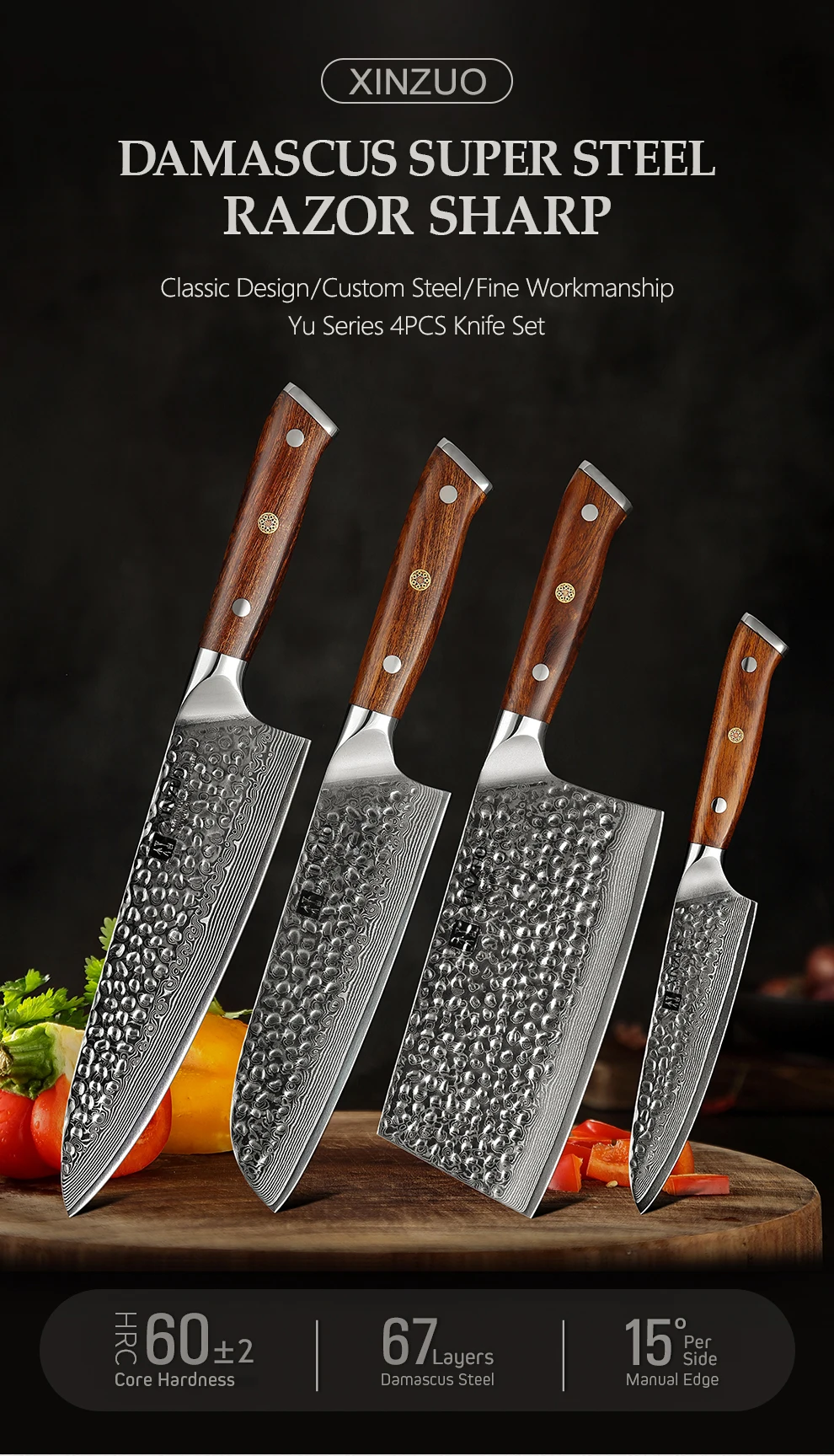 Набор ножей из дамасской стали XINZUO Yu серии 4 шт.